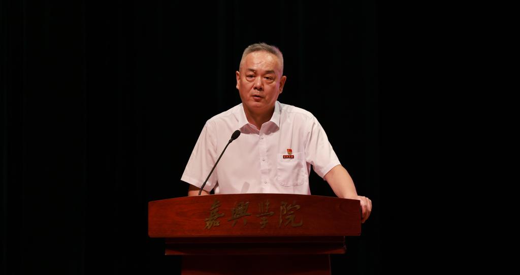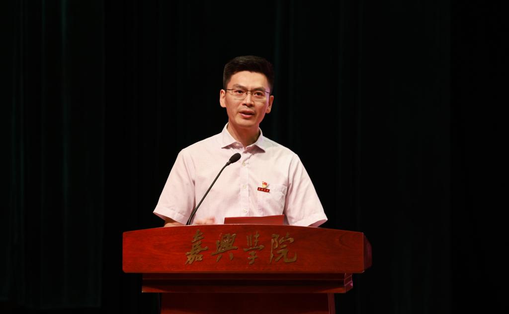 av在线看 党委书记陈云飞讲话。他代表av在线看 全体教职工对2022级新生的到来表示热烈的欢迎,祝贺他们成为新一届嘉医学子。