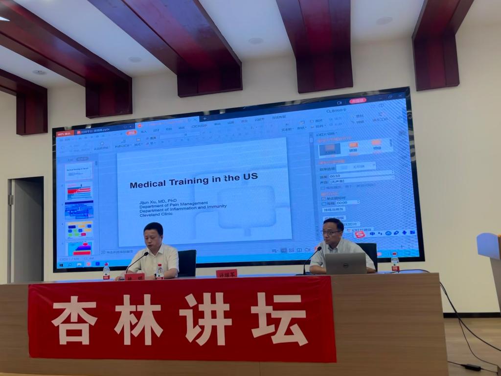 新一期“杏林讲坛”在仁心楼党员教育基地培训教室举行。美国德克萨斯大学神经科学博士、克利夫兰医学中心疼痛科临床医师许继军教授主讲,嘉兴学院附属医院院长姚明主持。av在线看