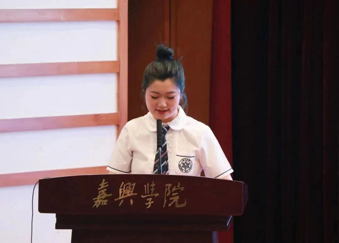 药学192班杨丹娜作为毕业生代表发言,希望毕业生不畏艰难险阻,不遗余力地去追求、探索自己的未来,努力成为对社会有贡献的人。