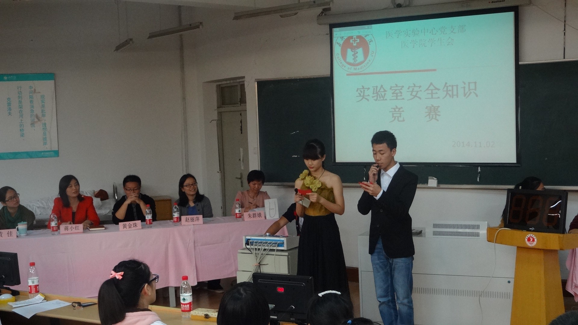 实验中心党支部和学生会权益部合办的“新生杯”实验室安全知识竞赛,在梁林校区医学实验中心620教室火热展开。本次竞赛的12支参赛队伍分别来自医本、护本、药学14级学生。