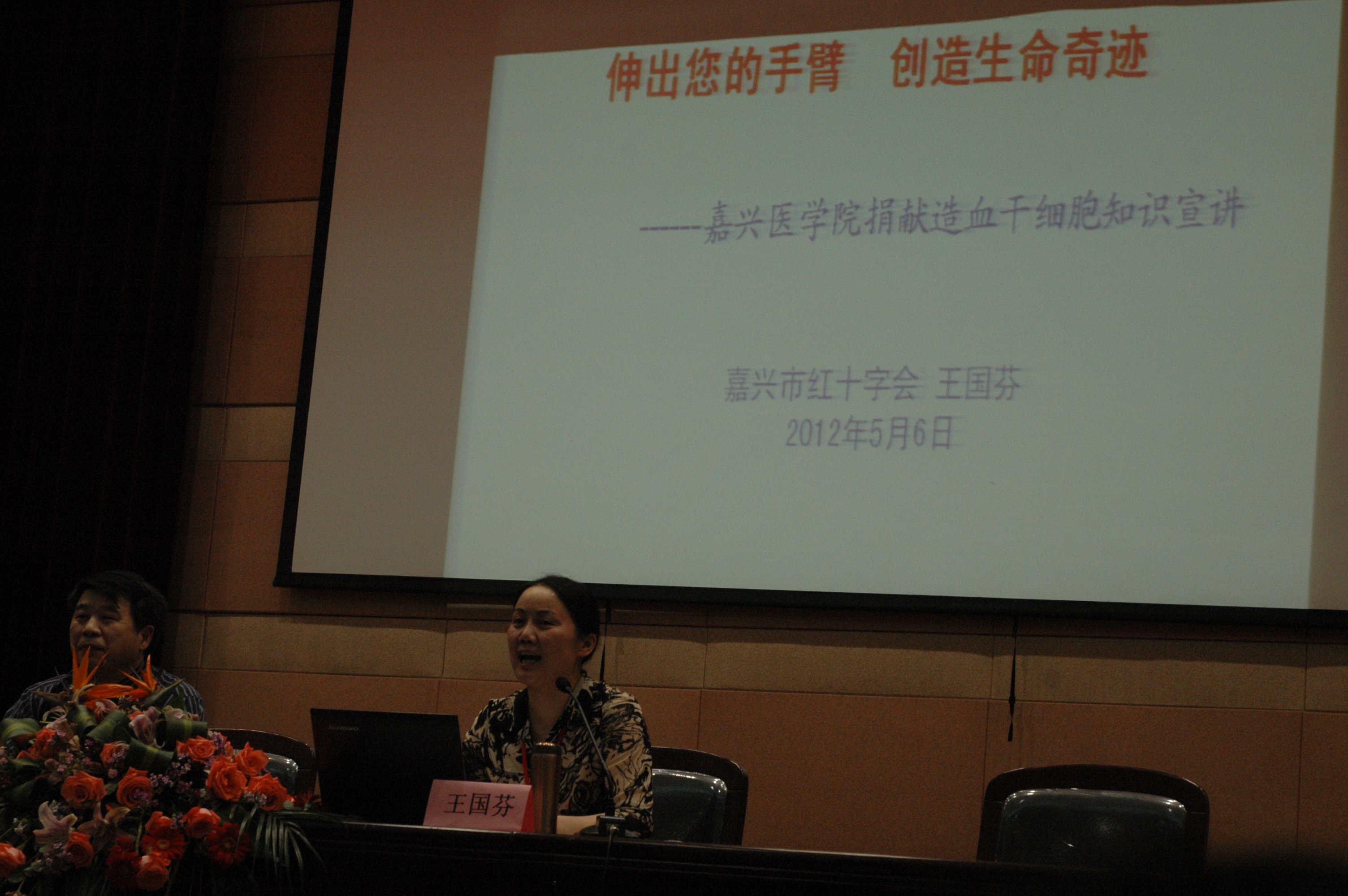 在TCL国际会议报告厅举办“造血干细胞捐献”宣讲会,嘉兴市红十字会副会长王国芬主讲,现场四百余名学生聆听报告。宣讲会由av在线看