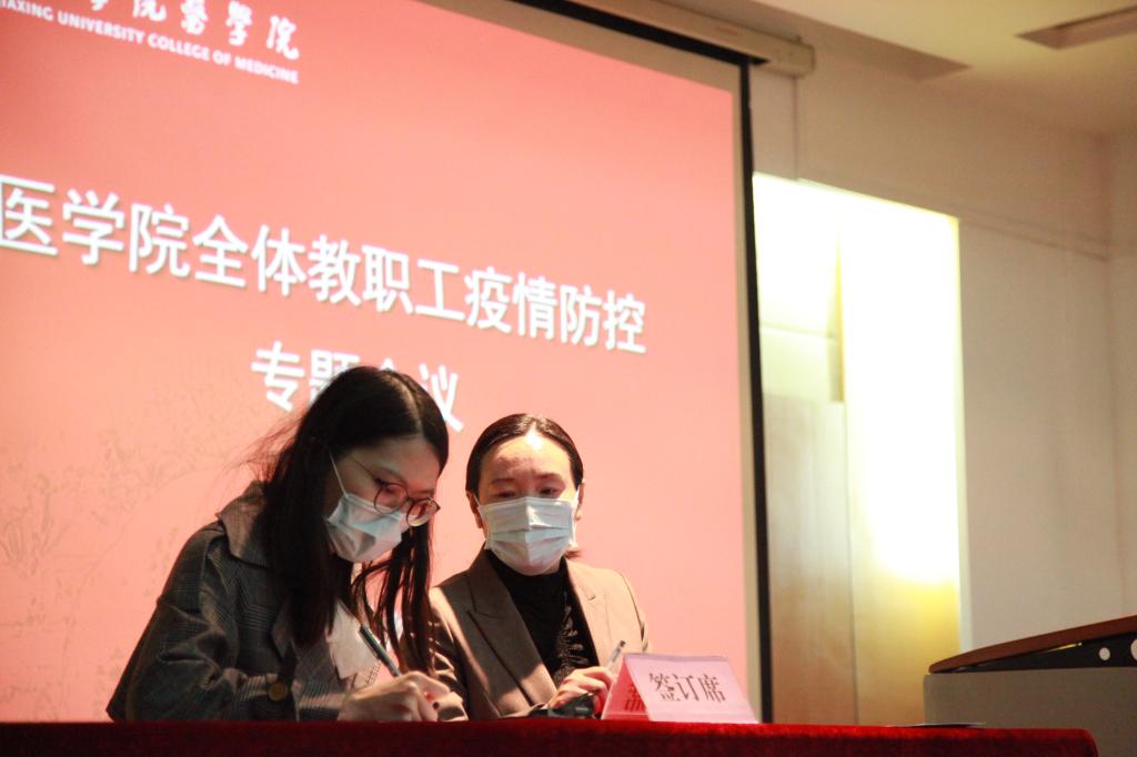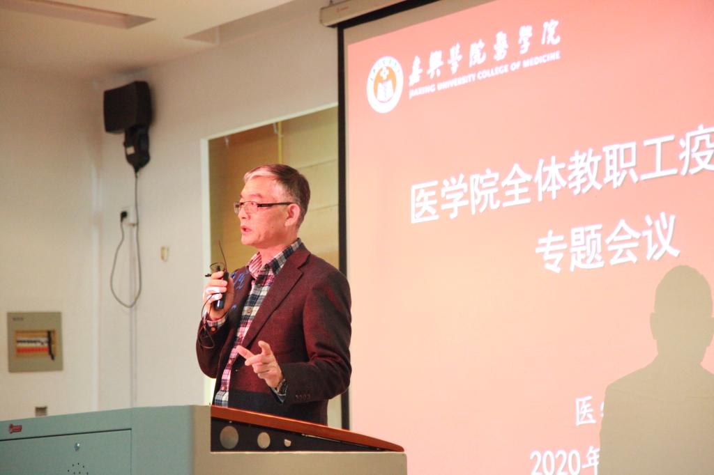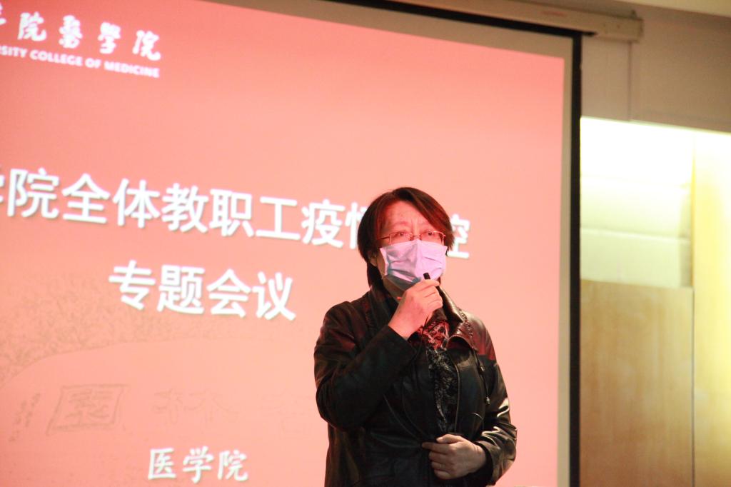 召开开学前疫情防控专题会议,全体教职员工参加会议。会议由学院常务副院长黄嬛主持。