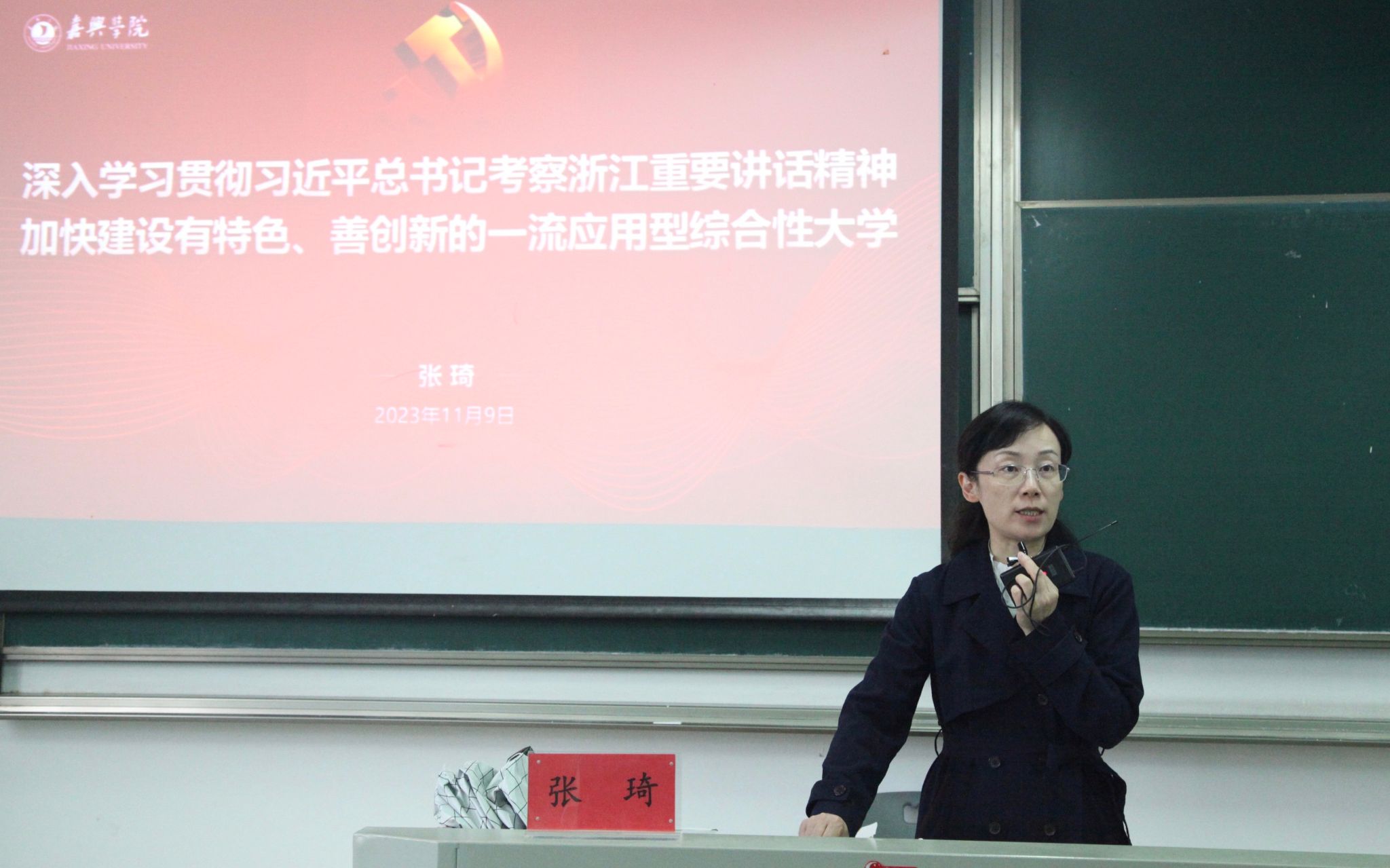 校党委委员、副校长(主持日常工作)张琦到av在线看 作学习贯彻习近平总书记考察浙江重要讲话精神宣讲报告