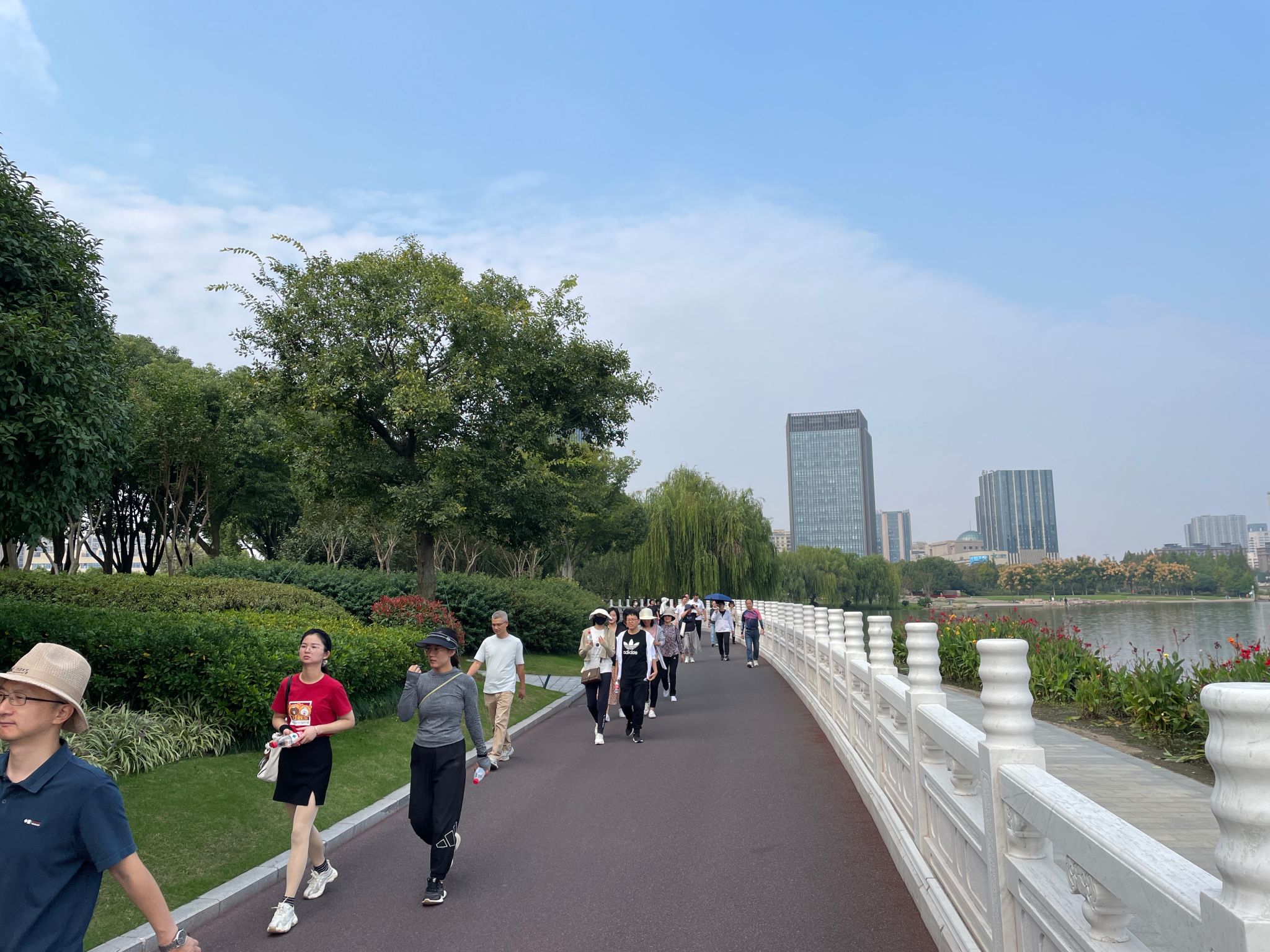 秋高气爽循绿道,波光潋滟赏秋风。本次健步走活动从梁林校区东门出发,途径展望路花海至姚家荡公园,全程九公里。大家兴致高昂、精神抖擞、阔步前行,丈量城市生态绿道,享受沿途美好自然风光,目光所及之处皆是浓郁的秋色。老师们边走边谈,交流工作生活,享受健步走带来的快乐,在健康、轻松、愉悦的氛围中完成了本次健步走活动,展现了av在线看 全体教职工积极向上的精神面貌。