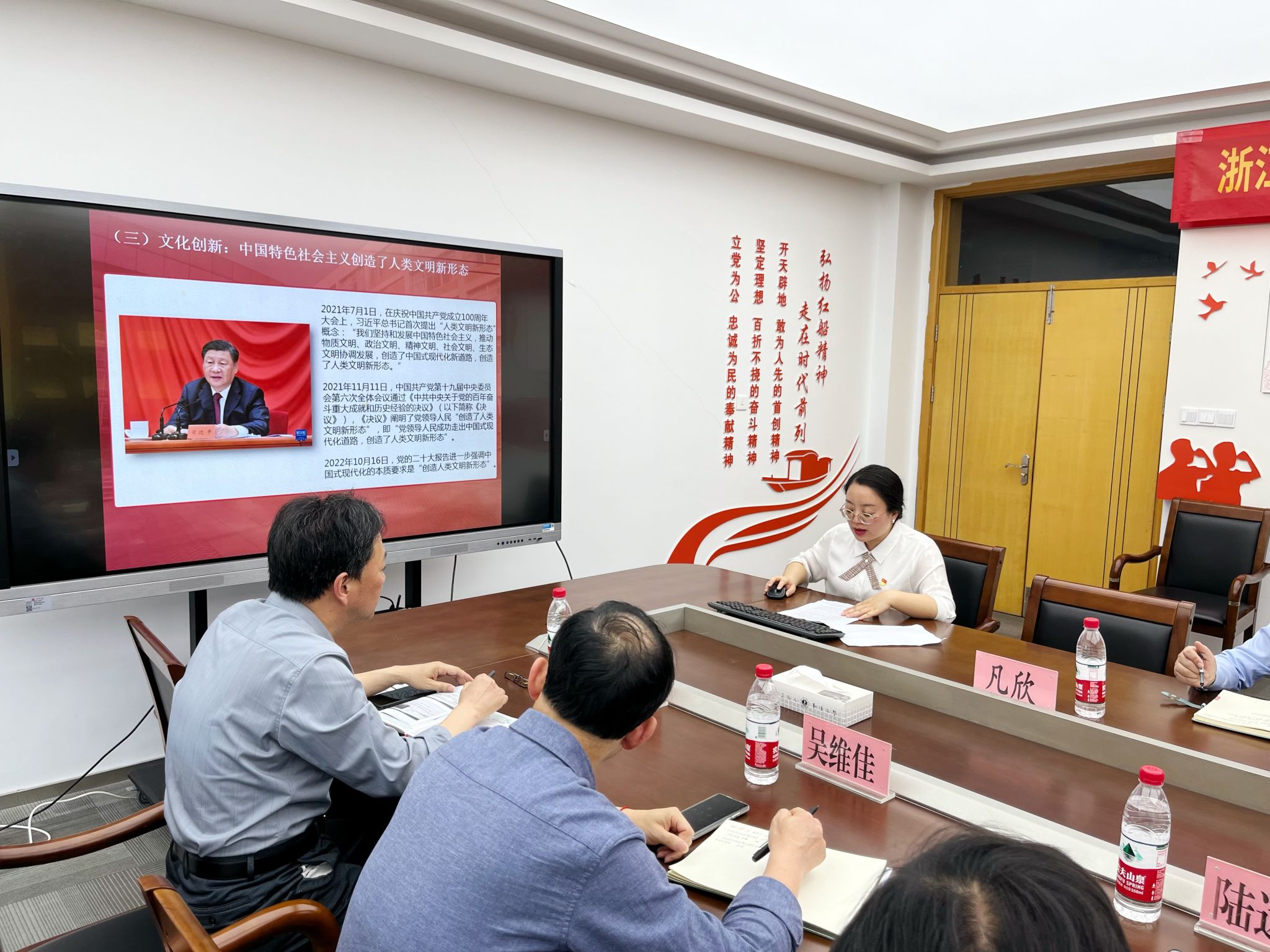 、信息科学与工程学院和继续教育学院党委理论学习中心组在悦礼楼505会议室开展联学活动,深入学习习近平文化思想,会议由信息科学与工程学院院长朱耀东主持。