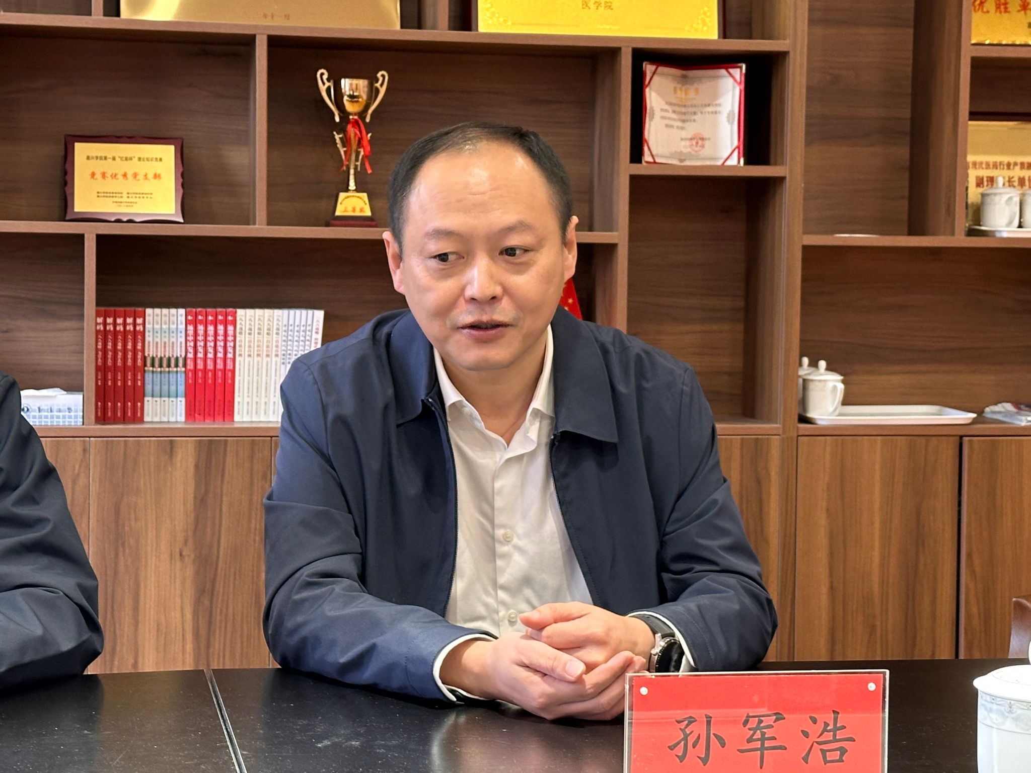 何治院长对孙军浩一行的到来表示欢迎,他指出,av在线看 作为嘉兴市内唯一开展医学教育的大学,一直积极与市内各医院开展各类合作与交流。双方可以在科学研究、本科生及研究生教育等方面开展合作,深入对接校内团队及教师,实现资源共享、合作共赢
