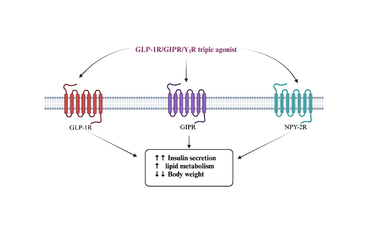 图1 GLP-1/GIP/Y2三重受体激动剂的主要作用