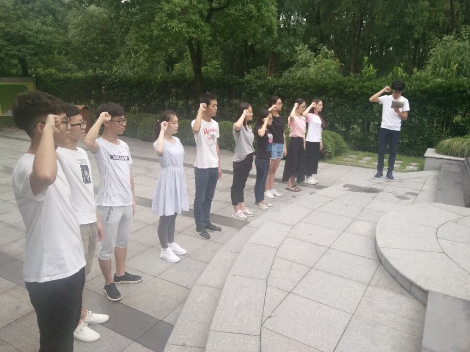 队员们刚踏进烈士陵园便收起了路途中的嬉笑,肃然起敬。首先由团队派代表为革命先烈献上鲜花,全体队员鞠躬,默哀三分钟以表对革命先烈深深的敬佩与缅怀。队员们在先烈的雕像前庄严宣誓,字字句句尽显队员们对老一辈革命先烈的尊敬和钦佩,更展现了他们以先烈为榜样,奋发向上的决心。前辈们顽强不屈、勇于开拓创新的精神使得队员们对生命和奉献有了更深刻的理解,也让他们意识到和平繁荣的来之不易。从烈士陵园出来后,大家感到精神抖擞,脚步声亦显得格外有力。