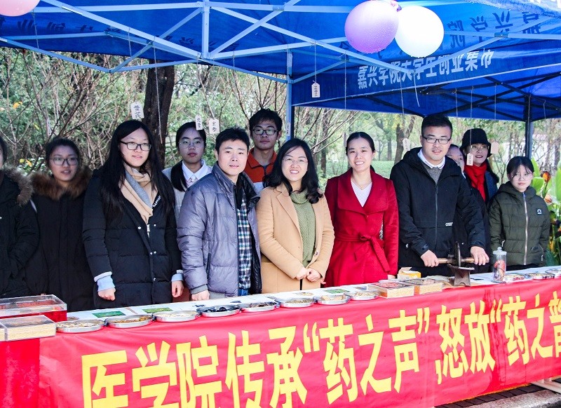 药学系联合医疗协会和本草社在梁林校区第一食堂门口举办了以“传承‘药之声’,怒放‘药之韵’”为主题的药学文化节活动。