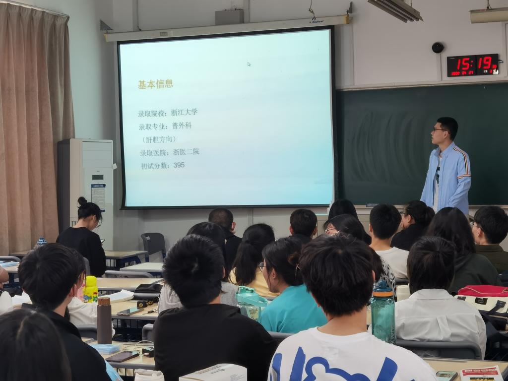 成立考研助力讲师团,并于近日走进2018级临床、2019级护理及药学专业班会课,向学院学子分享考研经验。