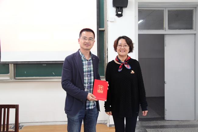 黄嬛常务副院长为一等奖学金获得者颁发证书