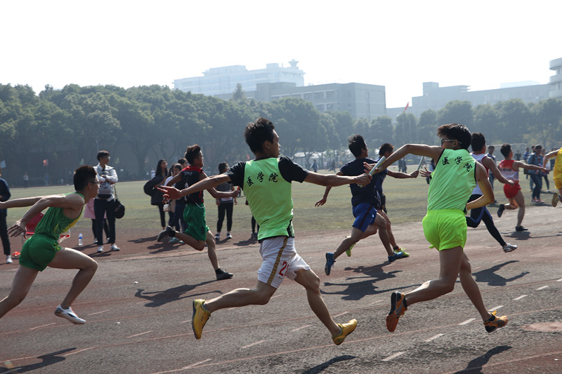 温暖的阳光照射着跑道,矫健的步伐谱写着诗篇,嘉医健儿们在运动场上展现了自己拼搏向上的精神。百米跑道上,只听得枪声一响,几道身影如离弦的箭般飞奔而去;长跑运动员们在赛场的轨迹如同朝梦想前进的历程,一滴滴汗水用坚持汇成,一个个脚印用毅力踏出;跳高、跳远的运动员用高度和长度展现了青春的态度;健儿们手中的标枪如长长的金梭,承载着希望,腾空疾飞向前;手托铅球的健儿们在空中划出了一道完美的弧线;接力赛上,接力棒带着默契与团结在两只不同的手之间传递。