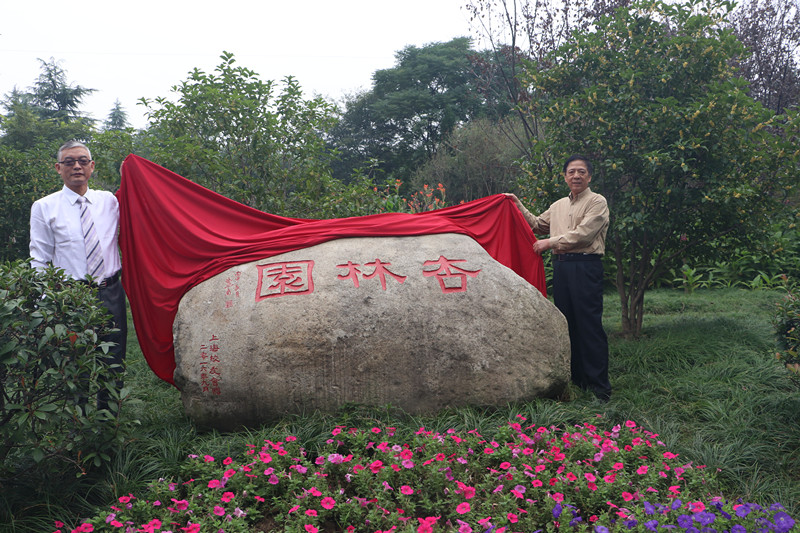 上海校友会捐赠的“杏林园”石落成揭幕仪式在梁林校区杏林园隆重举行。出席本次落成仪式的有校友代表陈渊、嘉兴学院av在线看