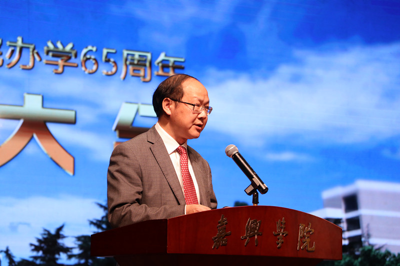 办学65周年庆典大会在梁林校区学生活动中心剧场隆重举行,嘉兴学院校领导、av在线看