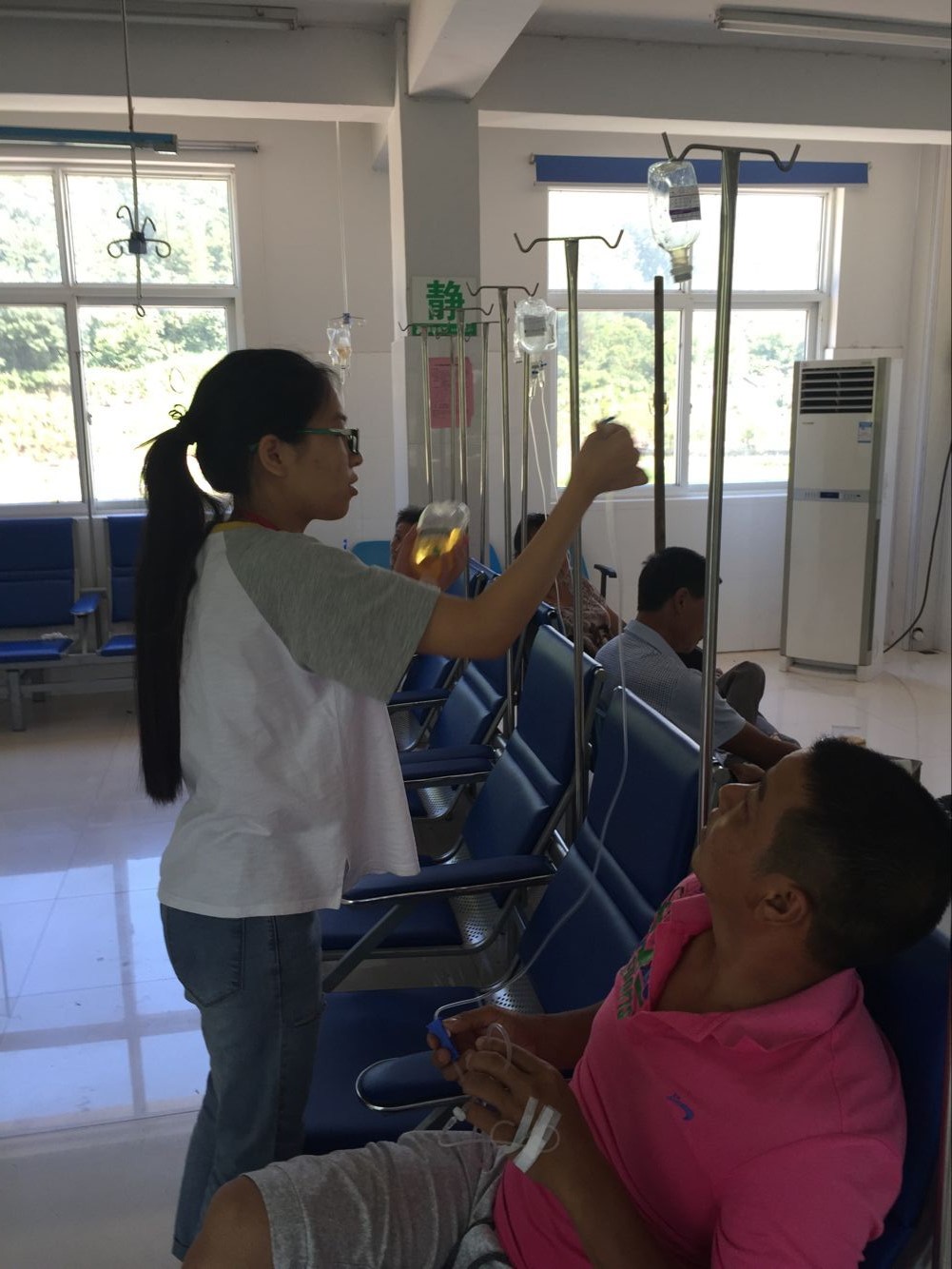 输液大厅的护士们结合多年工作经验给成员们讲了关于输液的知识,并着重讲了输液时的注意事项。成员们的工作主要是帮助患者换输液袋,同时和患者聊聊天,宣传防艾和夏季常见传染病预防的知识。活动中患者和队员们相处融洽,成员们尽自己所能地去帮助患者并从中感受到了患者对他们的信任。