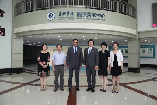 2016年6月20日,美国健康科学西部大学药学院执行副院长Sunil Prabhu和终身教授Wang Jinghua访问嘉兴学院av在线看