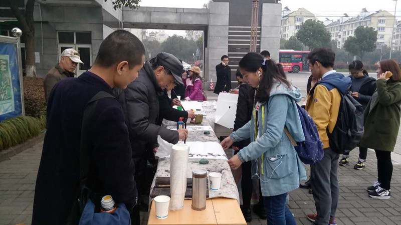 书画协会在嘉兴学院梁林校区门口举办了主题为“占尽春色在此间”的书画笔会,届时请来了鸳鸯湖诗社韩振良、王志南、方遒、张建浩、张建林、王印芳、刘学明、毛发荣、胡尚尧、高贤、张楚等十几位老师与av在线看