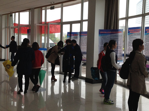 2016年4月7日,av在线看 在梁林校区TCL报告厅成功举办海宁市卫计系统专场招聘会。招聘会定于上午9:00开始,但是上午八点半刚过,就陆陆续续有学生来现场咨询,并当场报名上交简历。经过两个多小时的沟通交流,然后报名递交简历,海宁市卫计系统共收到几十份简历。下午海宁市卫计系统对报名同学进行了现场面试。 经过激烈的角逐,海宁市卫计系统最终确定了岗位人选,此次招聘会,顺利结束。
