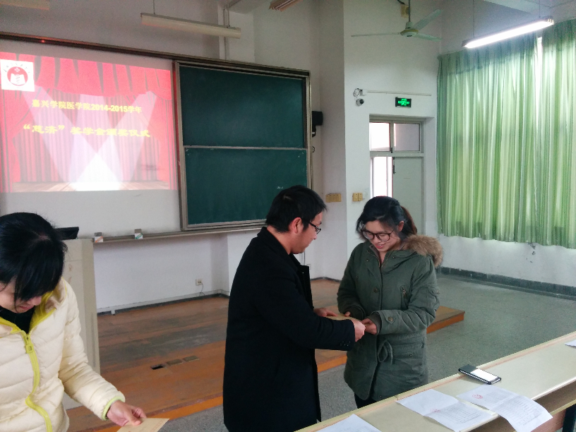 在1号楼223教室举办了2014-2015学年“慈济”奖学金的颁奖仪式。出席颁奖仪式的人员有:学院副书记黄金珠老师、学工办彭溶老师、杨玲飞老师,以及本次获得“慈济”奖学金的70余名同学代表。