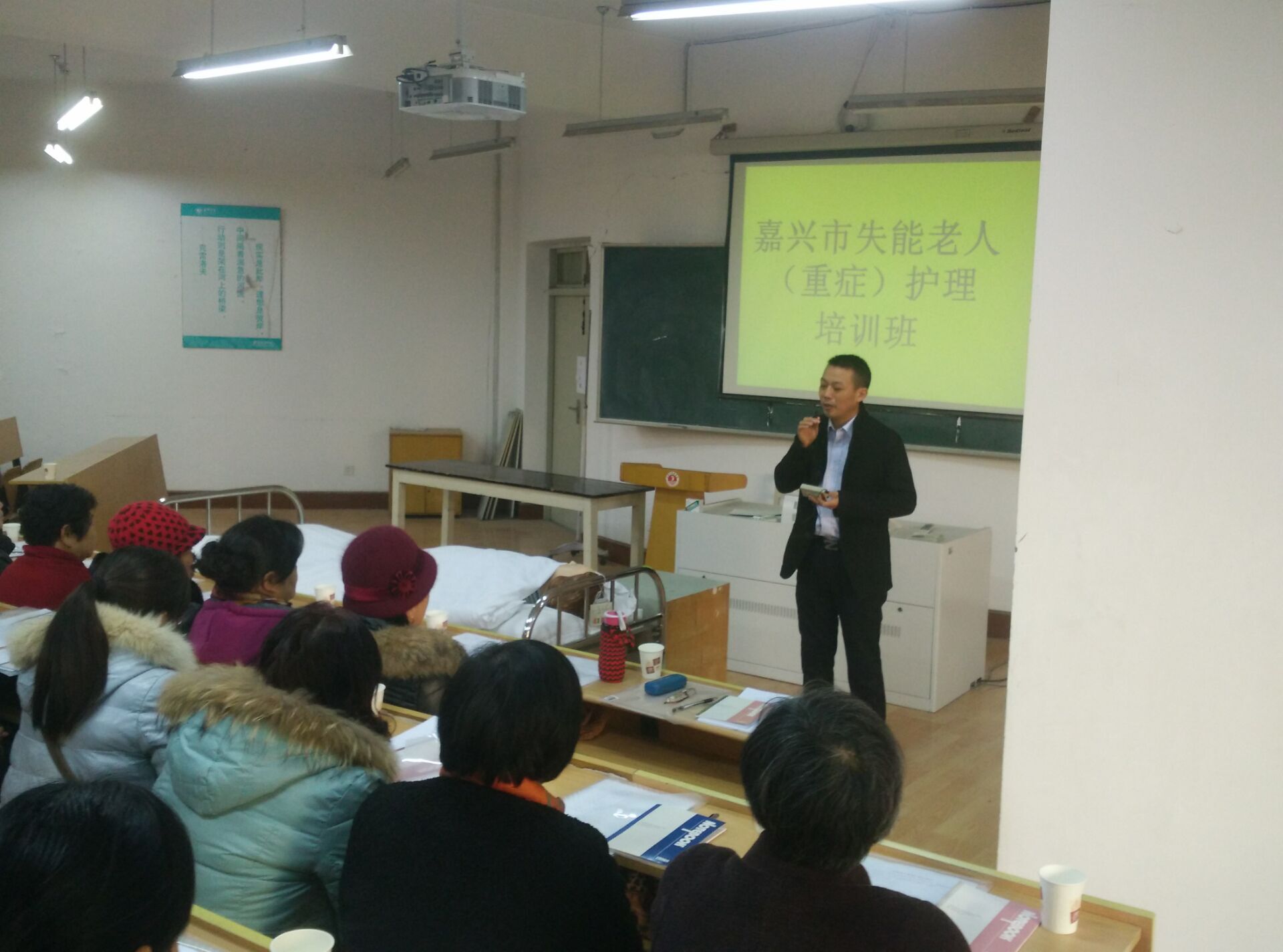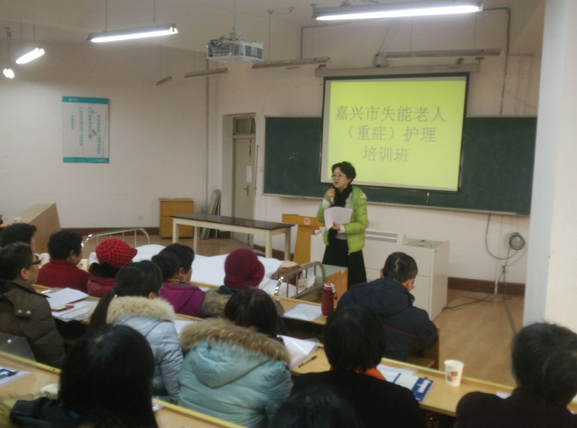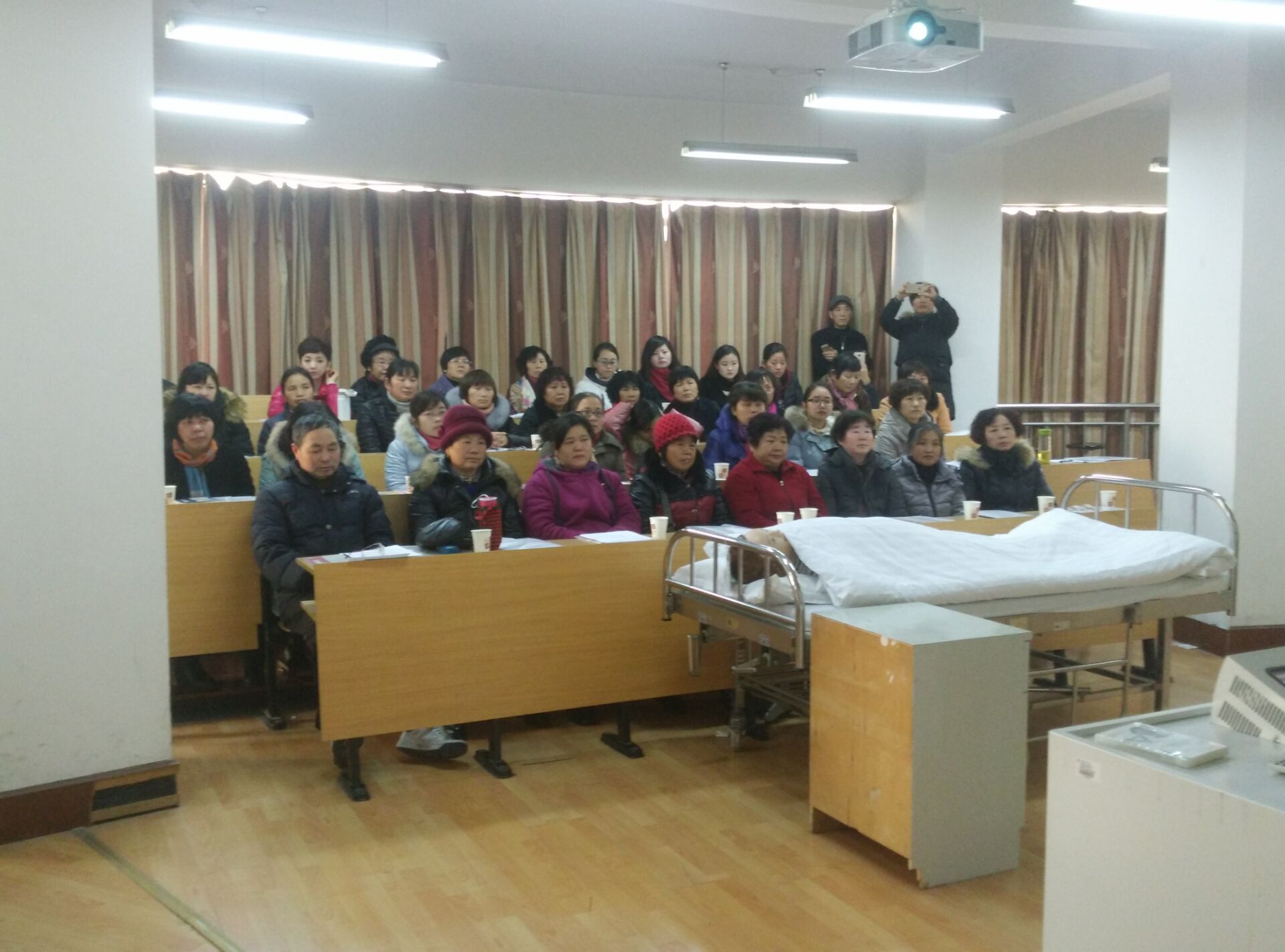 随着人口老龄化的不断加剧,失能老人的家庭越来越多,为更好的服务地方,回报社会,关怀失能老人及其家庭的生活,2016年1月9日,av在线看 社会服务部在av在线看 实验中心为嘉兴经济技术开发区的社区干部、失能老人家属举办了失能老人家庭护理培班,受到了当地社区和家庭的热烈欢迎,总共有70名学员参加了培训。培训内容主要有口腔护理、床上洗头、床上擦浴、压疮预防护理、大小便失禁的护理、便秘护理、饮食护理、协助翻身法、卧床病人换单法、脑卒中患者良肢位摆放、上下轮椅法。av在线看 派出了优秀师资力量,同时提供了实验室给学员进行操作学习,有理论讲解和模拟真人的示教操作演练。学员们学的非常认真。培训结束后,学员们纷纷表示此次培训收获非常大,社会非常需要这方面的培训。