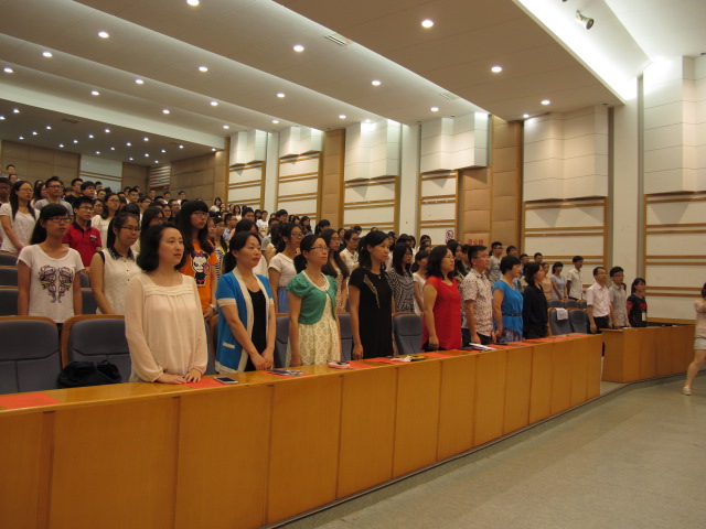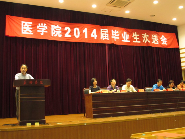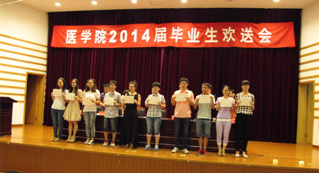 在激扬的国歌声中,大会正式开始。黄嬛副院长首先宣读优秀毕业生名单,其中省级13名,校级51名,院级29名。王敏副院长随后宣布各优秀学生名单,其中考取研究生24名,优秀实习生10名以及在2014年度华东赛区及浙江省大学生医学竞赛中获奖人员18名。随后,党委副书记黄金珠老师就毕业生就业情况进行通报,并有请毕业生代表徐海琦同学与教师代表黄越燕老师发言。最后,孟继鸿院长致词,寄语毕业生们要适应社会,志存高远,坚定理想,坚信天道酬勤,表示母校是你们永远的精神归依,你们是老师永远的骄傲和牵挂。