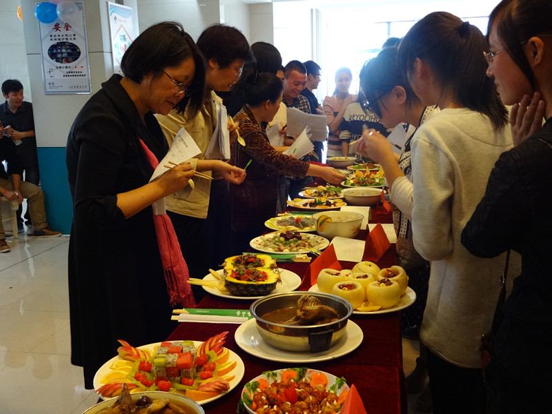 于梁林校区新食堂二楼隆重举行首届药膳文化节暨药膳制作大赛。学院副院长黄嬛、药学系副主任黄越燕、学工办主任蒋小红、团总支书记赵丽萍、医学实验中心主任赵桂珠、生药学教研室主任黄雄及药学系教授傅应华均出席了本次活动,并担任药膳制作大赛的专业评审。此外,现场还有20位来自av在线看