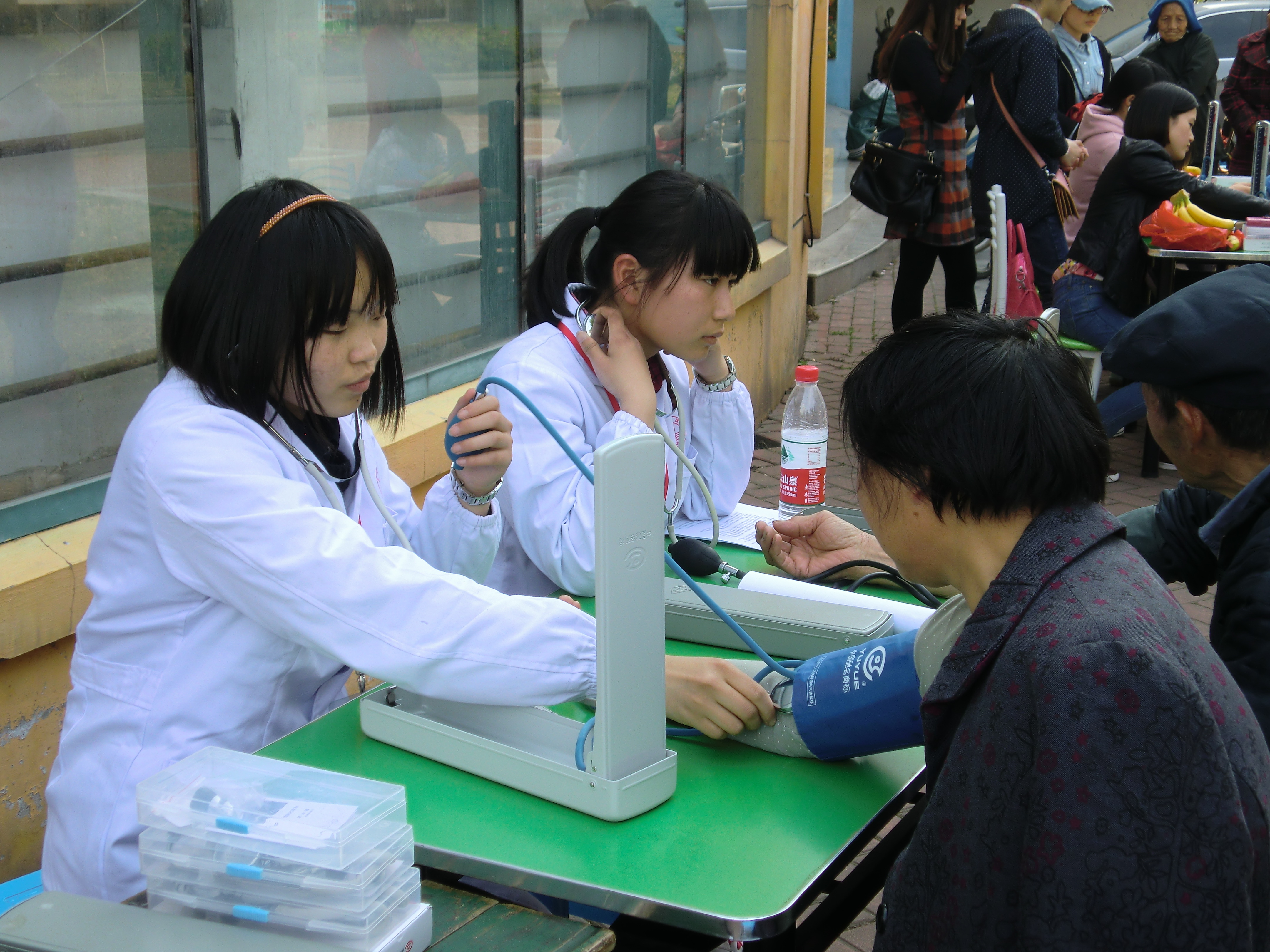 4月13日下午1点半,临床一支部组织六名学生党员来到金穗月亮湾小区开展了主题为“关注健康,预防H7N9”的社区服务活动。同学们认真为居民们量血压,解答有关日常生活中常见病的问题,如高血压的用药、饮食等,并鼓励他们多做户外活动,及时就医和体检。同时结合当下的流感趋势,同学们也为居民宣传H7N9的预防知识,让居民对H7N9有一个初步认识,警惕发烧、咳嗽等上呼吸道感染症状。