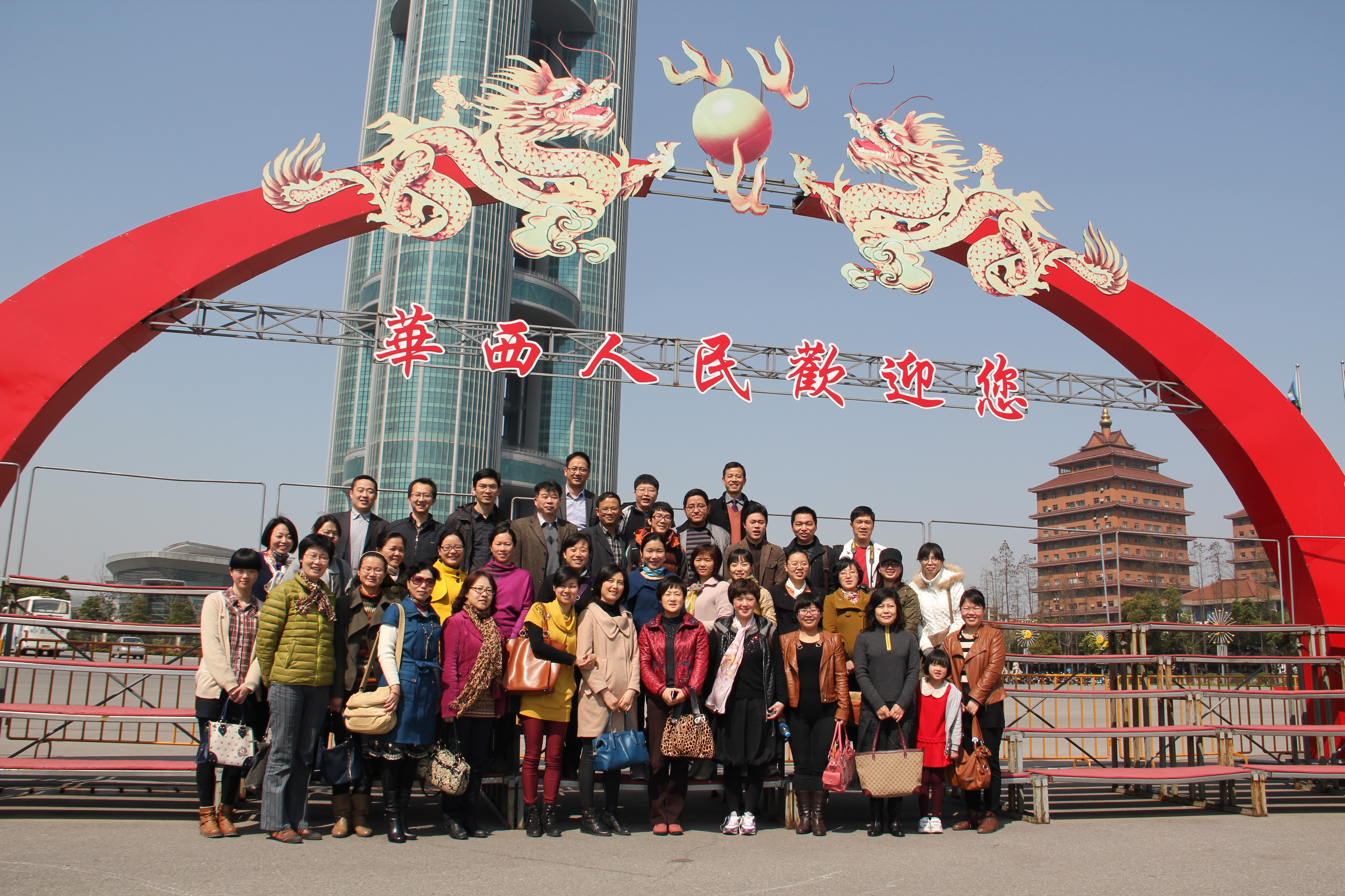 38名教师党员们结合党的十八大精神的学习走进“天下第一村”——华西村开展参观学习活动。