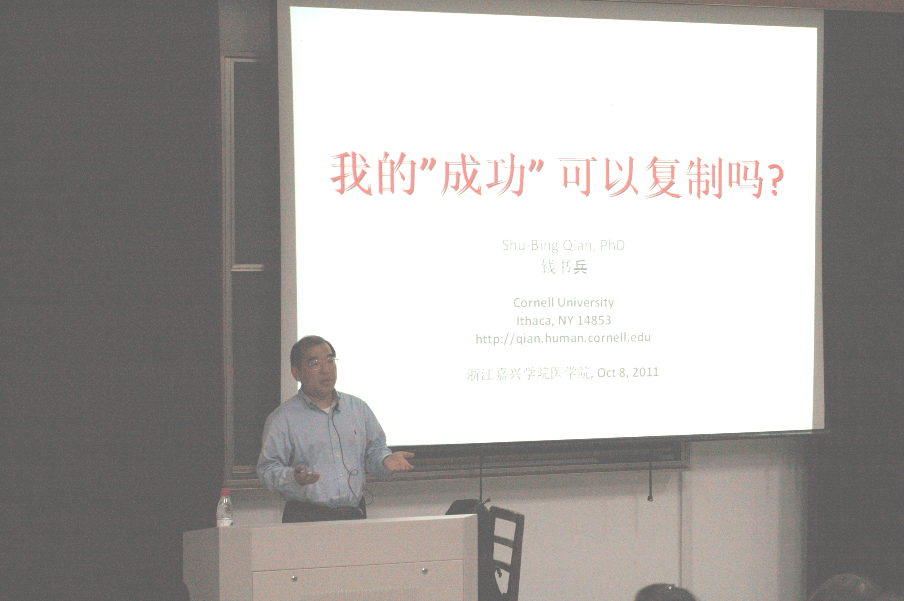 88届校友、美国康奈尔(Cornell)大学教授钱书兵回母校作报告,与师生交流。