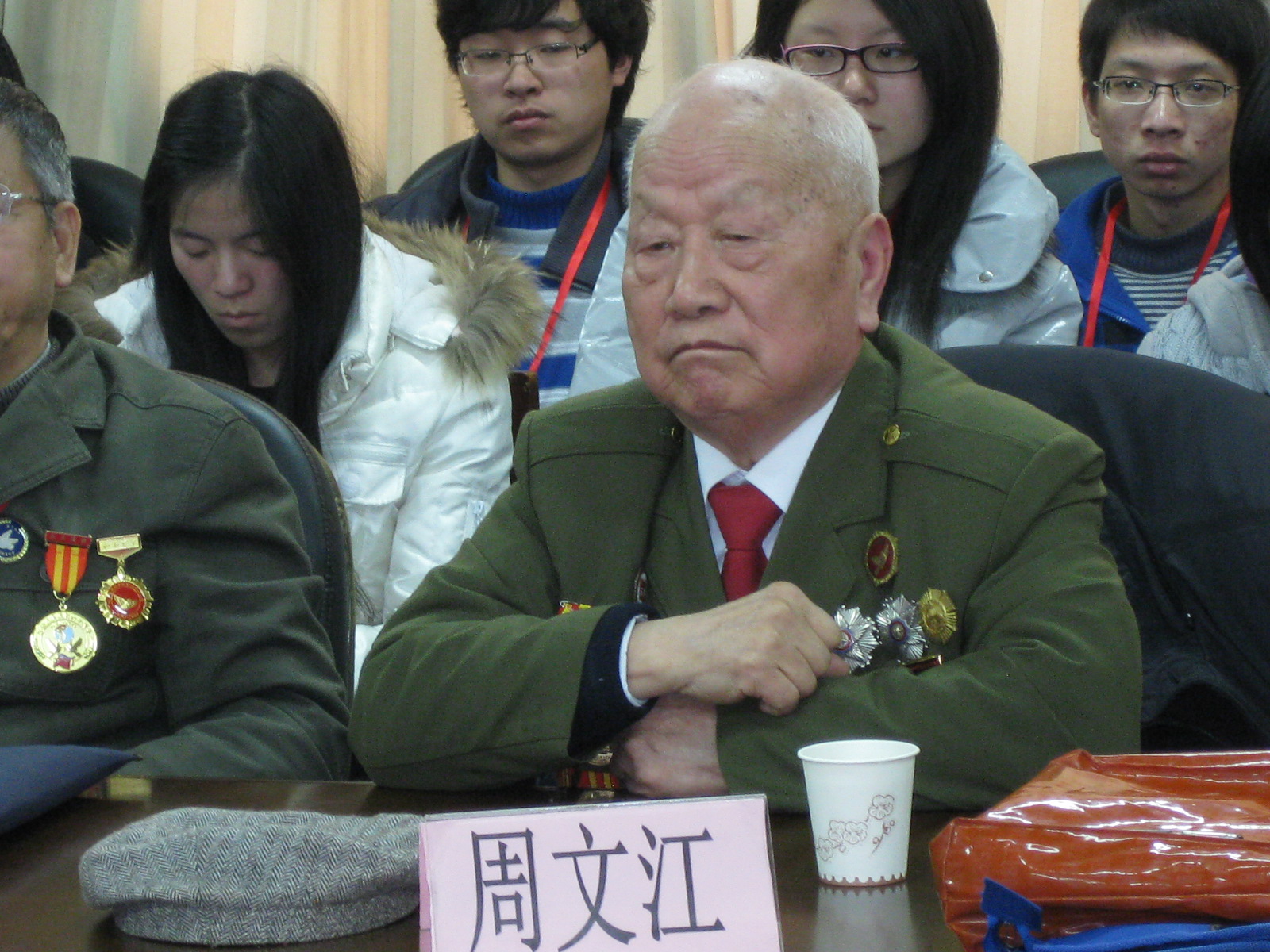 报告会中,周文江爷爷讲述了自己如何从一名普通的农民到成为指挥千军万马司令员的事迹。在讲述过程中,周爷爷回忆并讲到过去艰苦的岁月,不禁落下了眼泪,现场的每一位同学都被他们的精神深深感动。王雄爷爷领唱的《中国人民志愿军军歌》将报告会的气氛推向了高潮。在互动环节中,同学们积极提问,四位老人热情解答,报告会充满气氛活跃。最后,周文江爷爷告诫每一位同学“牢记历史,珍惜现在美好的时光”。
