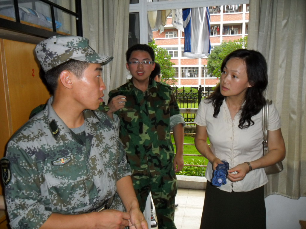 安排上,学院领导统筹规划,精心组织,以辅导员、班主任为军训工作成员,根据学院实际,做好军训计划,编制连、排,制定应急方案,建立考勤制度。军训工作中,密切配合,整合力量,充分调动教官、辅导员、班主任的积极性,形成军训工作齐抓共管的格局。安排工作组成员值班,做好走访各连、排工作,严格执行考勤,登记出勤情况。重视学生内务整理,以G5B124、G5A104分别为男女生标准内务寝室,组织全体军训同学参观,教官、辅导员及学生干部进行指导,验收并评比学生内务整理情况。由于军训时间天气炎热,av在线看