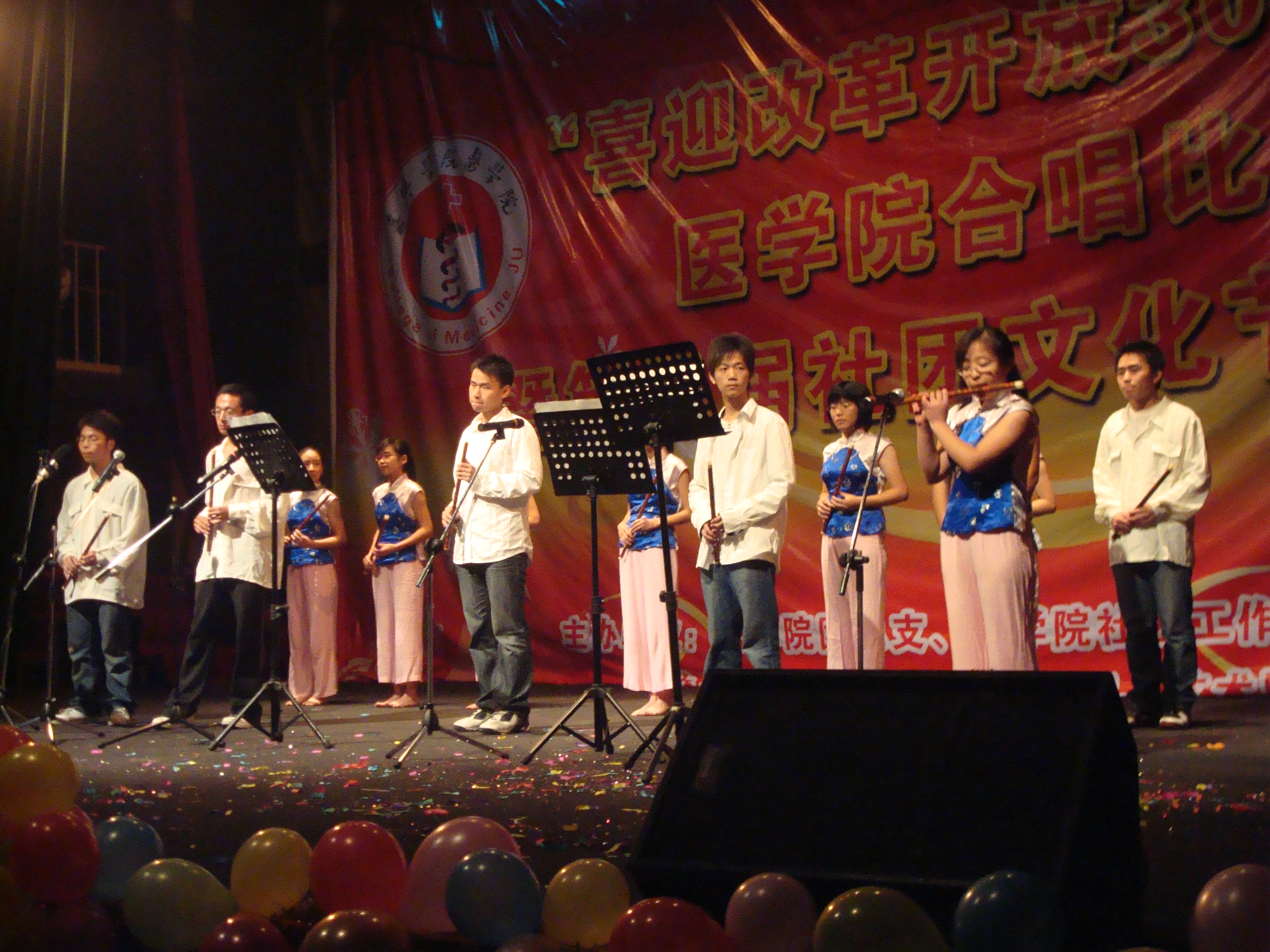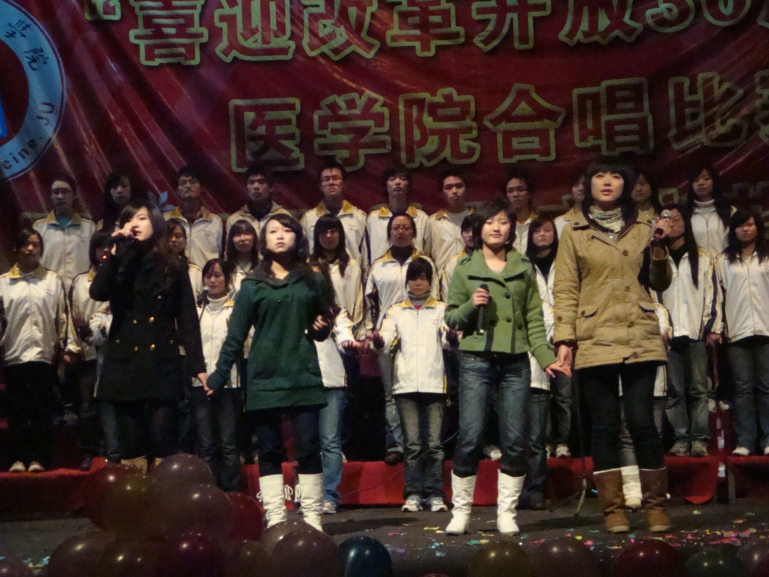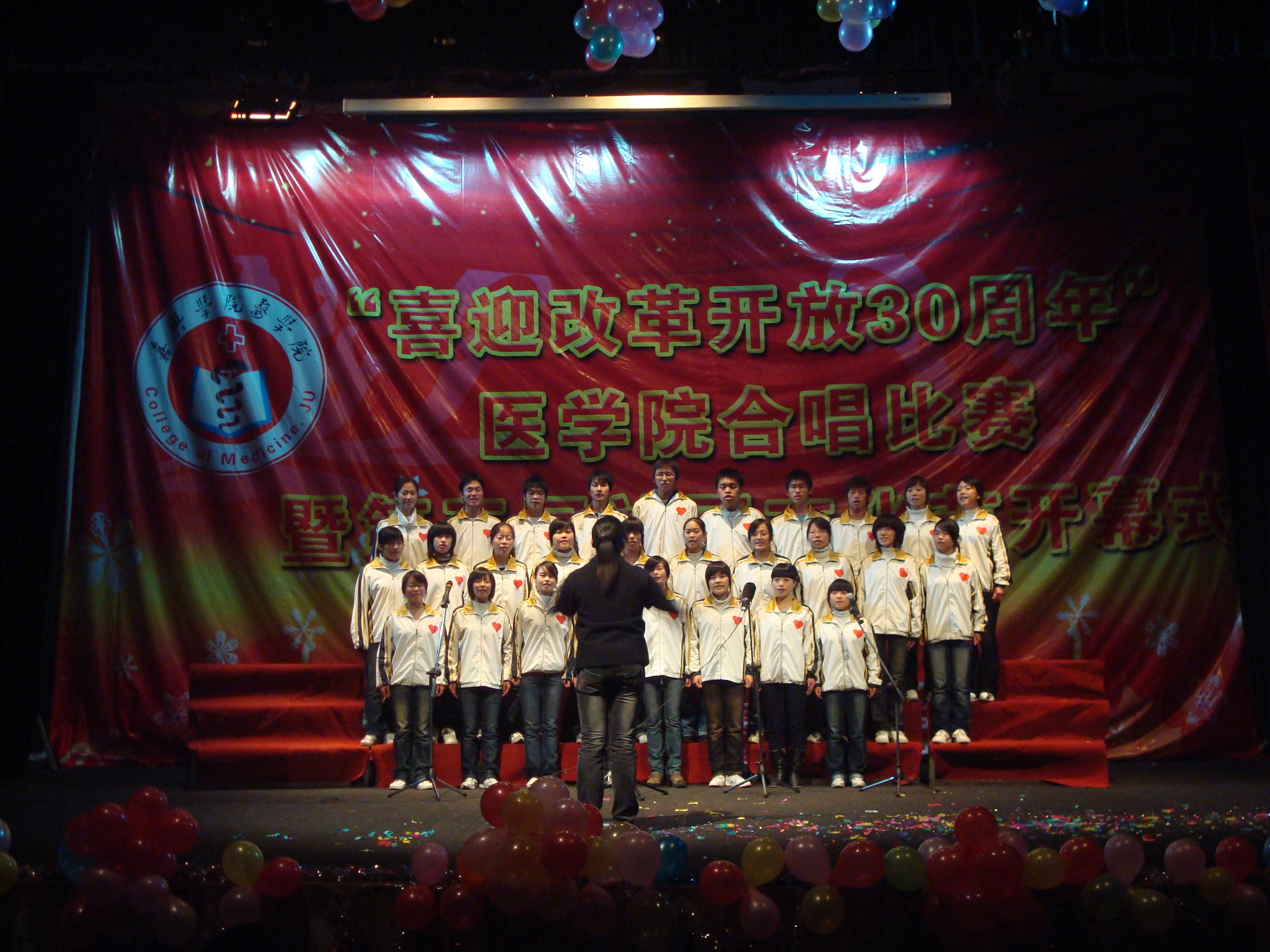 经过激烈的角逐,合唱比赛评委会评选出了奖项:一等奖—护本084,二等奖—护本081、医本082,三等奖—医本N073、N074、护本083;来自新疆的护本084班朱晓蕾获得“最佳指挥奖”。