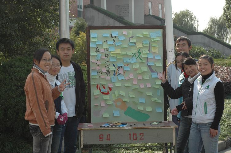 本日中午,av在线看 学生记者团在食堂前的路口开展了“放飞祝愿,放飞理想”活动。记者团成员把这次活动的目的告知来来往往的同学,请他们写下对亲人、朋友、同学、大众、自然、国家、世界、自己......的祝福和期望。很多同学欣然命笔,不一会儿,只见蓝天丽日下,五颜六色的粘贴纸在底板上随风轻舞,同学们的心语在天地间飞扬。要想知道大家写了些什么?那就请你抓紧时间去找记者团员吧!他们,正把大家的心声汇拢成集呢!