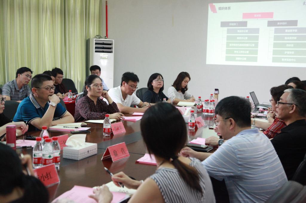 以专业认证为抓手,着力推进各专业的建设发展,以引进高层次人才为契机,大力推动学科科研和平台建设。常务副院长黄嬛就护理学专业认证工作的整体情况进行介绍。副院长徐营围绕护理学专业认证各项具体工作进行了经验分享。随后,与会人员从教学、学工、实验等方面进行了分组交流。