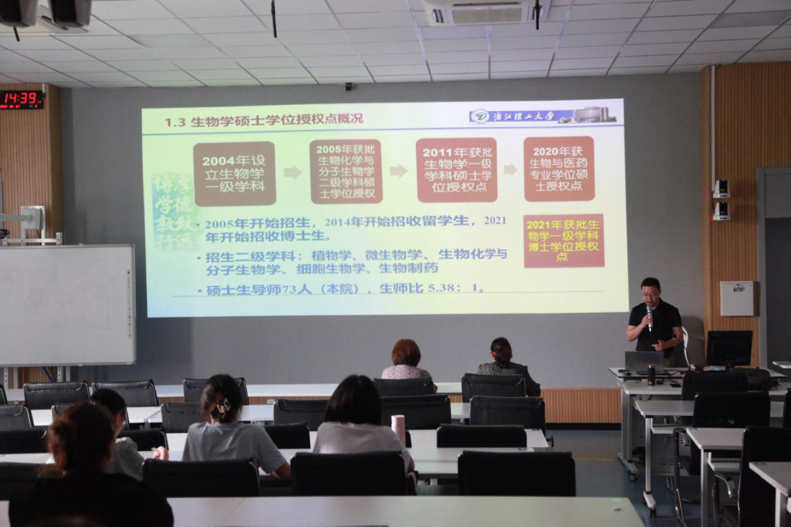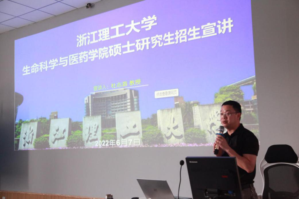 2022年6月7日下午,浙江理工大学生命科学与医药学院的杜志游教授来到医学院,为av在线看 学子做研究生招生宣讲。av在线看 副院长潘巍巍、药学系主任黄越燕等教师参加宣讲活动。杜志游教授介绍了浙江理工大学及生命科学与医药学院的概况、学院人才队伍、学科布局、专业方向以及硕士招生相关信息。此外,杜教授还介绍了生命科学相关知识,让学生了解到国内外当前研究热点及方向,开阔了学生视野,体验了多元文化、锻炼了独立思考能力,并与学生进行提问式互动,加深对广大同学对知识的巩固理解。