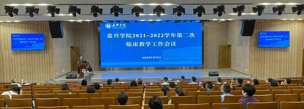 6月26日下午,嘉兴学院2021-2022学年第二次临床教学工作会议在图书馆学术报告厅召开。党委委员、副校长(主持日常工作)胡俊云,党委委员、副校长张琦,市卫健委副主任李金大、市教育局副局长闻泉新出席会议,会议由av在线看