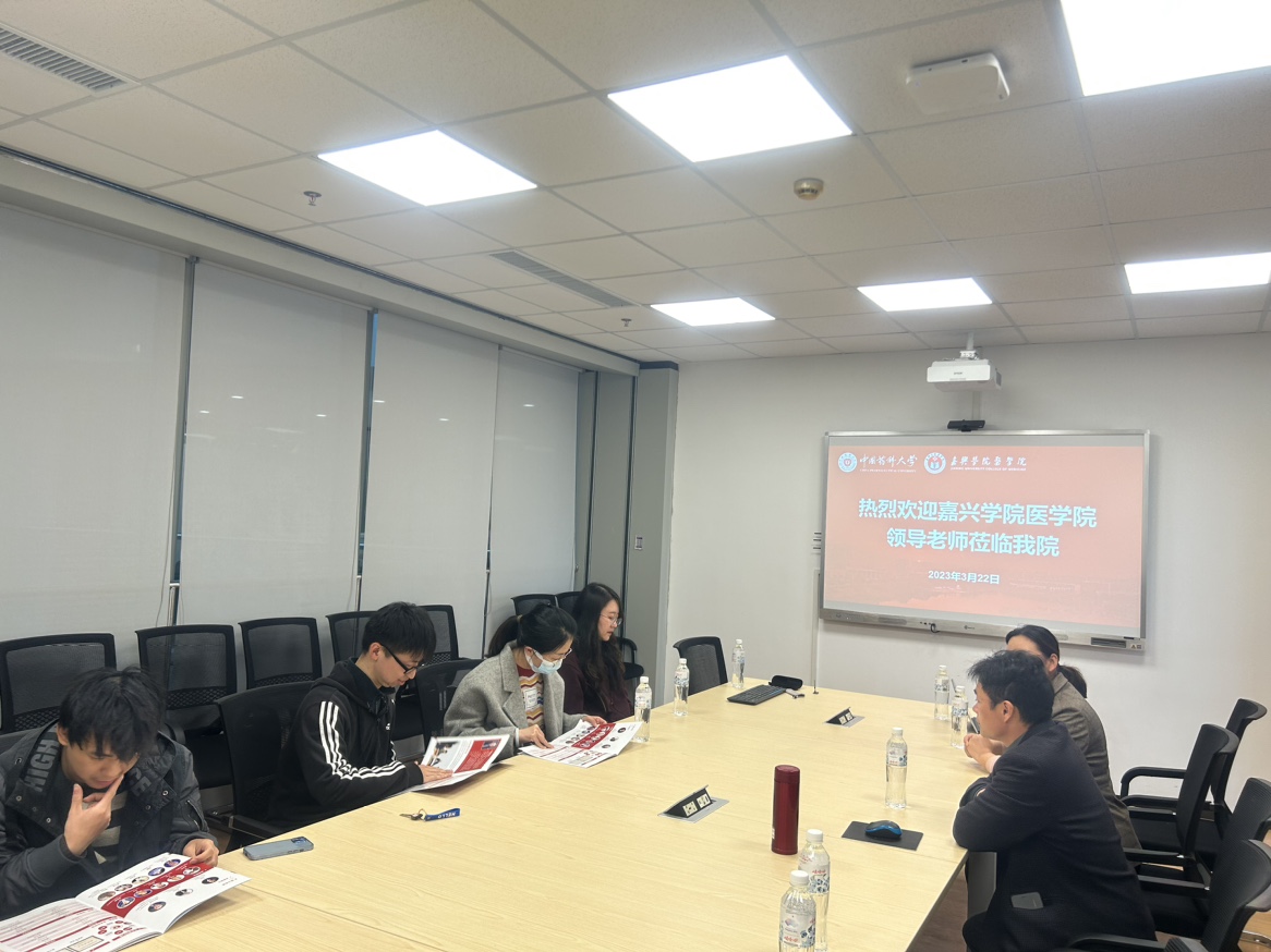 教师亲切交流座谈,潘巍巍副院长介绍了嘉兴学院的概况、师资队伍建设情况、学科建设及发展方向等内容,钱海教授也分享了理学院在创新型人才培养、课程思政融入经验及教师教学科研激励机制改革等方面的思考与实践经验。双方就高校人才培养和横向课题等话题进行了深入交流和探讨。