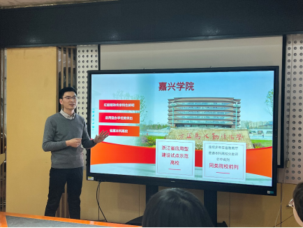 石统昆教授表达了对母校和老师们的感谢、感恩以及浓厚的思念之情,分享了本硕博读书期间的令人难忘的师生情怀和工作之后取得的一些成绩,以及对学弟学妹们的期盼与祝福。同时,介绍了嘉兴学院办学现状,他从专业设置、师资情况、教学和科研等方面做了分享介绍,对学院人才需求、岗位和待遇做了宣讲推介,同时表达了增加两校交流与合作的愿景,现场氛围热烈。