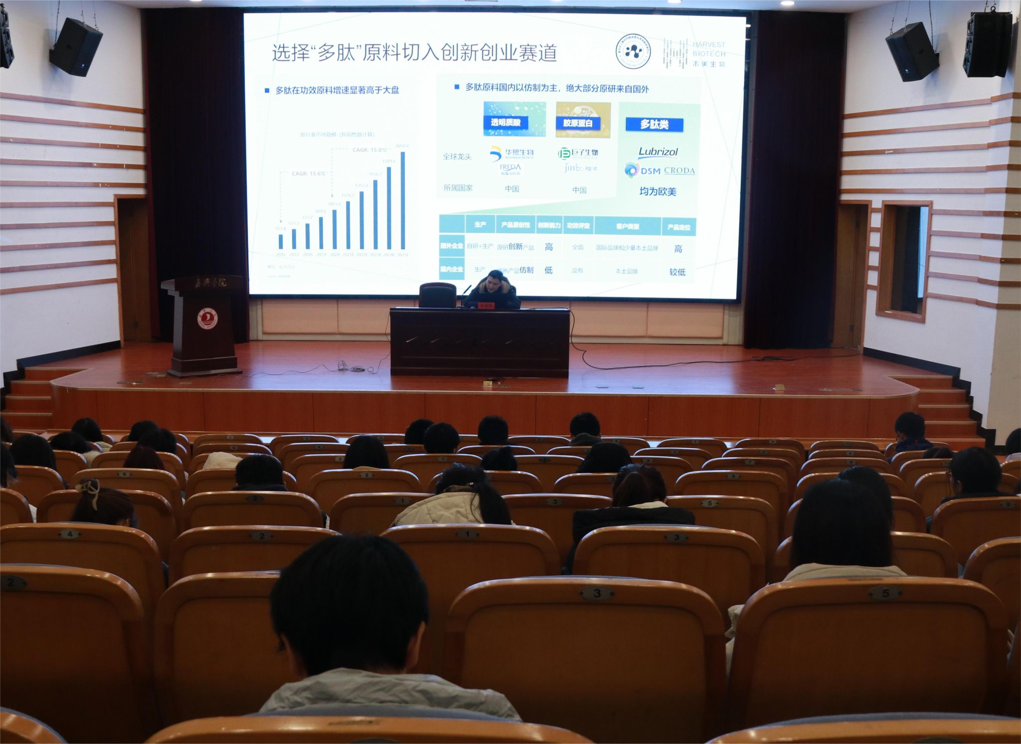 本次报告,李博士首先介绍了浙江清华长三角研究院衰老科学创新研发中心情况、禾美生物PAAS商业模式;然后从护肤品行业科技发展趋势、选择“多肽”原料切入创新创业赛道的机遇与挑战做了详细讲解;又分享了AI技术在多肽新原料创新开发中的应用、计算生物学加速靶向皮肤问题的功能活性成分开发;最后对与会有创业想法的大学生提出了围绕专业,学以致用,学深学透专业内容;尝试与别的专业的合作解决自己的问题,跨学院跨专业合作,从多维度多方向上解决问题;从市场需求出发而不是从技术本身出发思考问题培养自己向上、向下的管理能力;找有行业沉淀的专业人员合伙或者自己先在一个行业的代表性公司沉淀后再出发,加深自己对行业的深入理解五点建议。