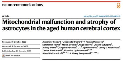 Alexey Semyanov院士领衔的神经生物学团队在国际著名期刊Nature Communications在线发表了题为“Mitochondrial malfunction and atrophy of astrocytes in the aged human cerebral cortex”的研究论文,嘉兴学院为本论文的第一署名单位。