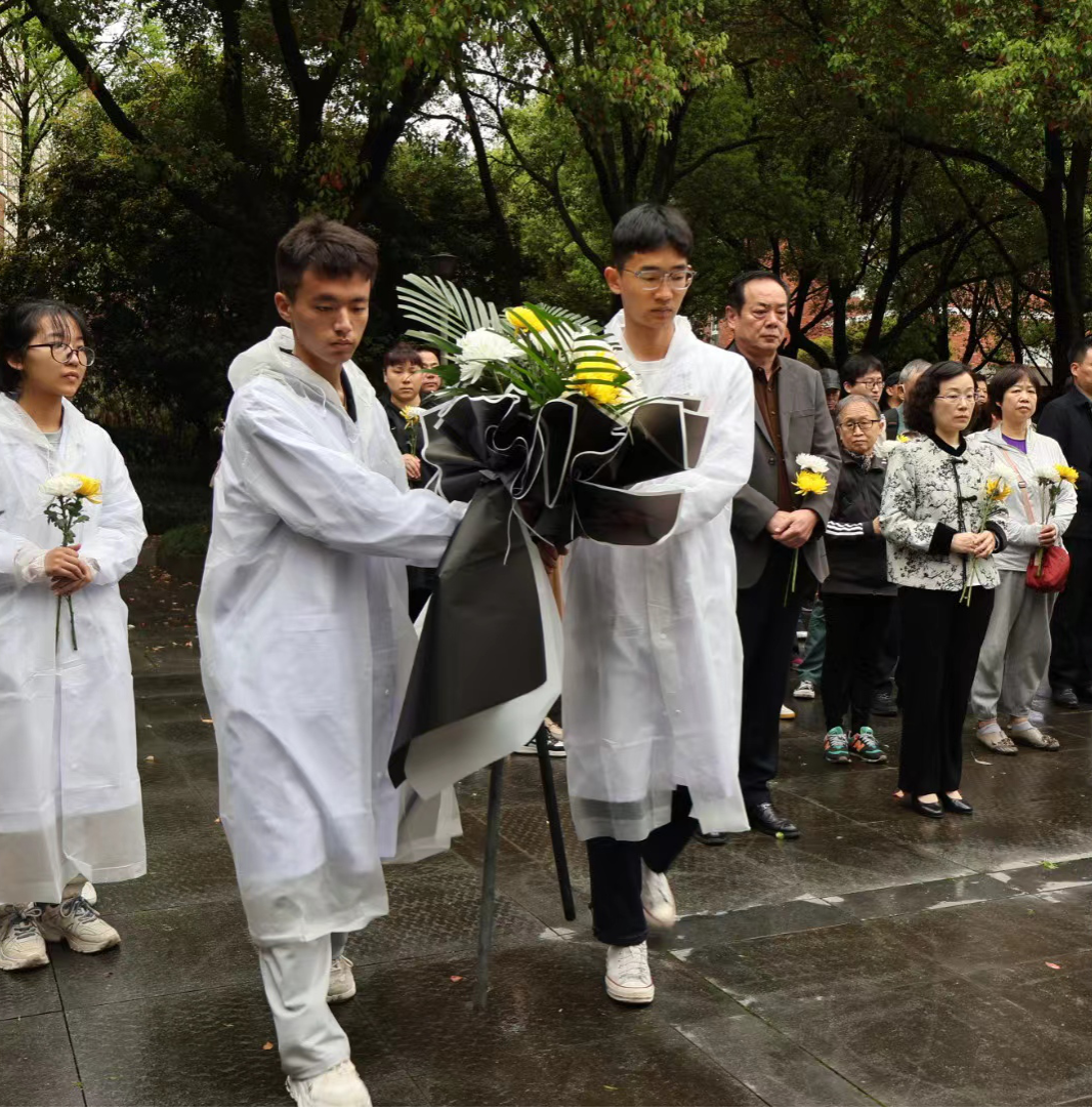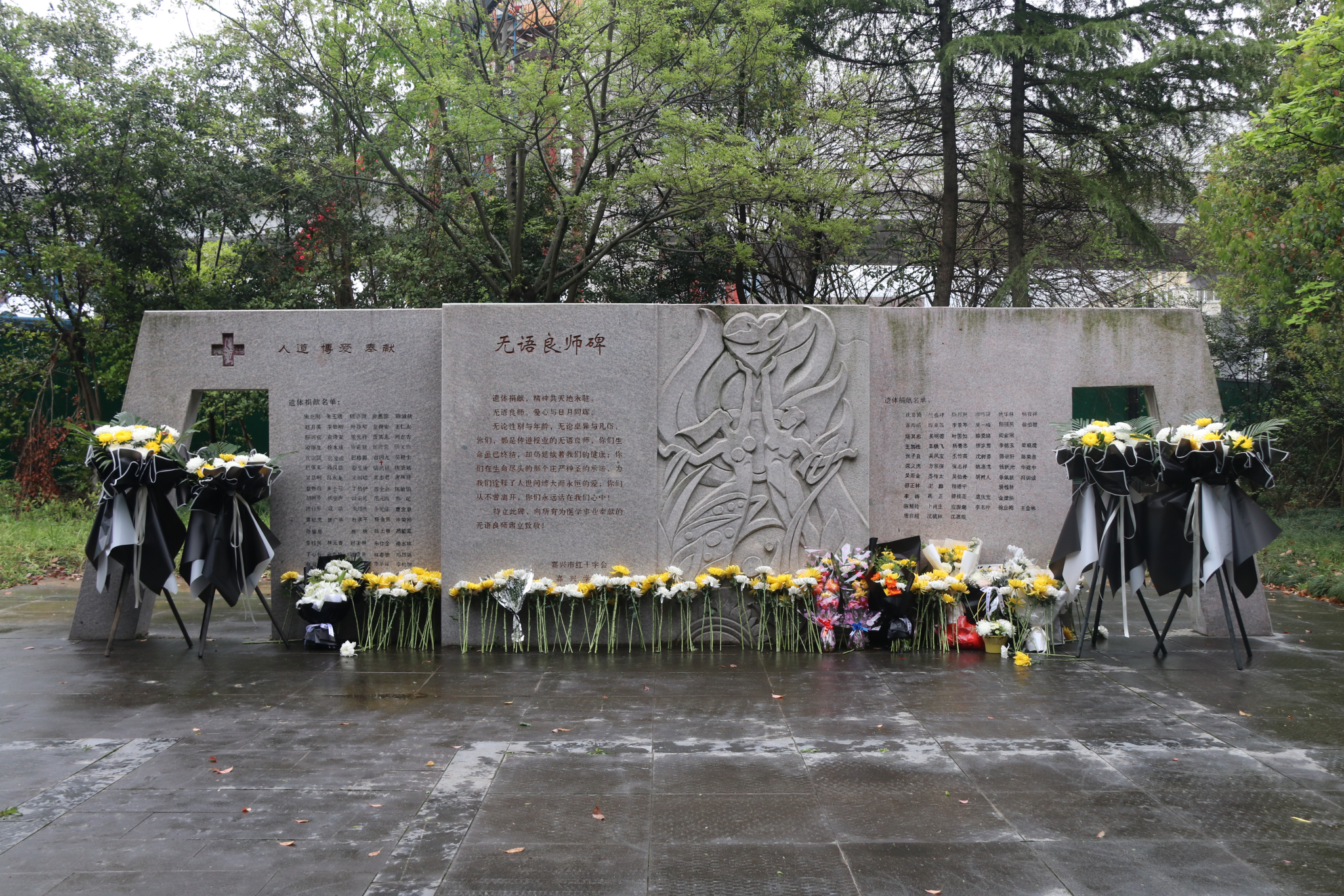 学生代表向无语良师碑敬献花篮,表达对大体老师的深深敬意与衷心感谢。