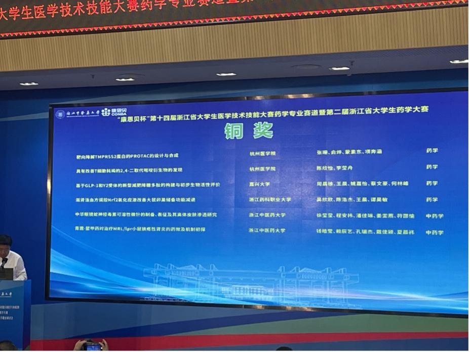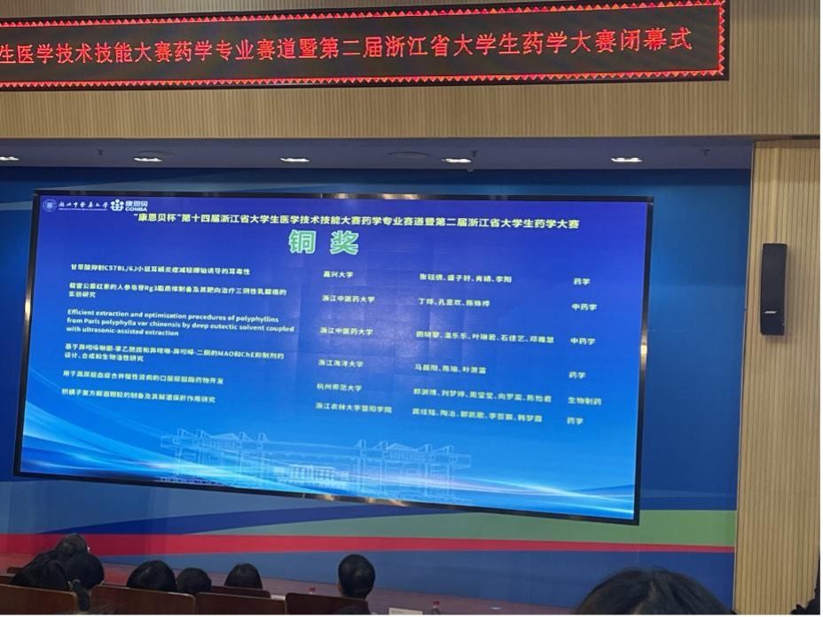 2024年6月2日,由浙江省大学生科技竞赛委员会主办、浙江中医药大学承办的“康恩贝杯”第十四届浙江省大学生医学技术技能大赛药学专业赛道暨第二届浙江省大学生药学大赛于浙江杭州圆满收官。