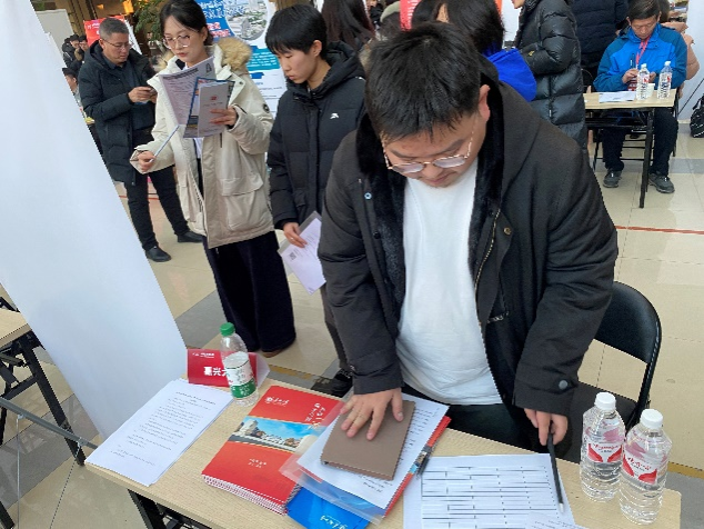 的人才引进政策及工作内容表现出了浓厚的兴趣。面对毕业生们的积极提问,高金来耐心细致逐一解答,不仅详细介绍了学校的发展前景、科研平台及福利待遇,还热情宣传了嘉兴这座城市的独特魅力,包括美丽的南湖风光以及作为党的诞生地的深厚历史底蕴。毕业生们纷纷领取了宣传册,表示将认真考虑并深入了解学校及嘉兴的相关信息。