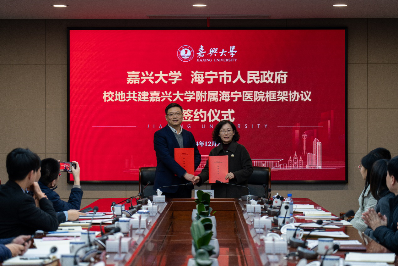 附属海宁医院框架协议。党委委员、副校长(主持日常工作)张琦,海宁市副市长马哲峰出席签约仪式。社会合作处处长丁玉泉主持会议。