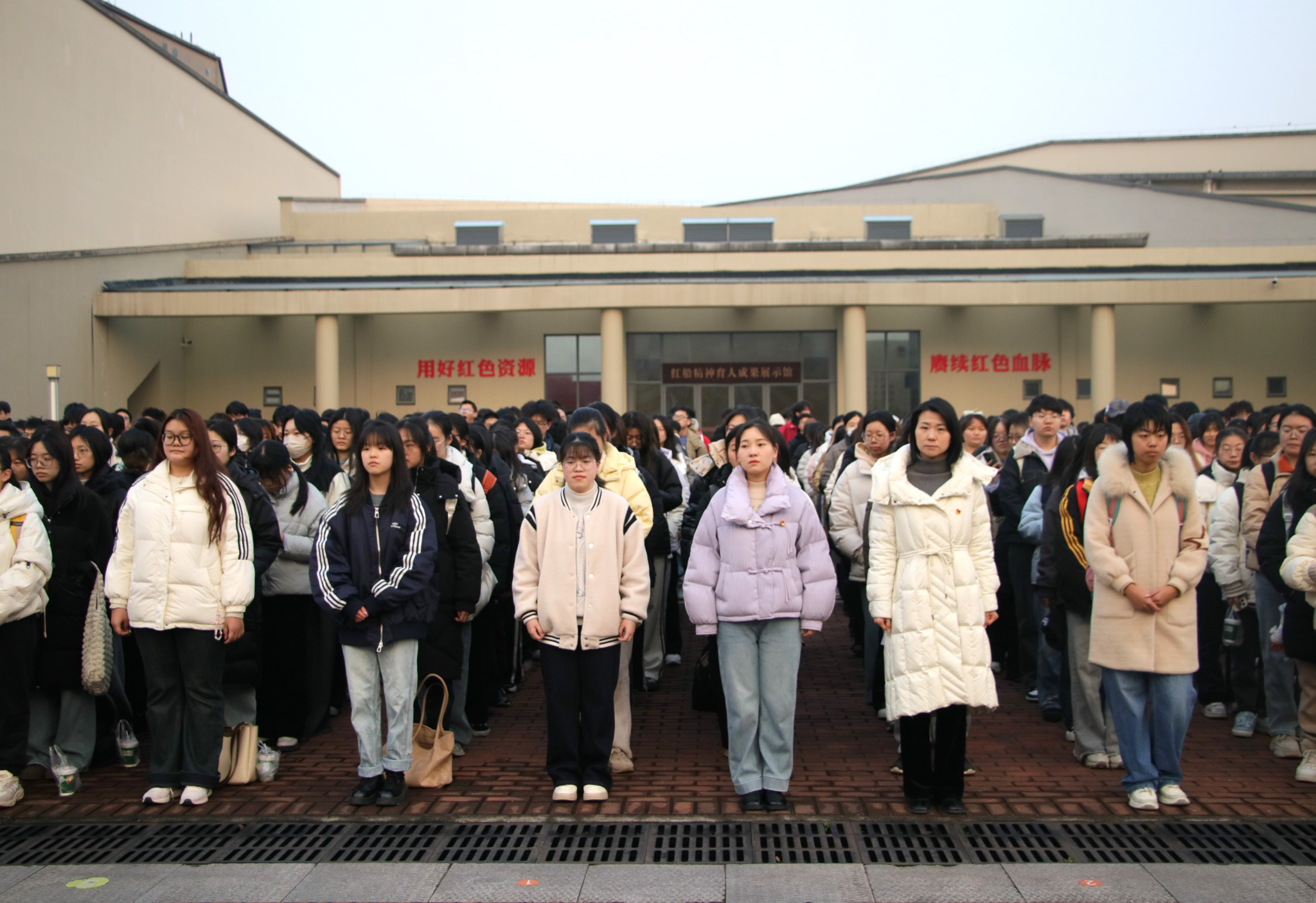 在肃穆庄严的国歌声中,鲜艳的五星红旗缓缓升起,在晨光中迎风飘扬。全体师生肃立,向国旗行注目礼,表达对祖国的无限崇敬与热爱。
