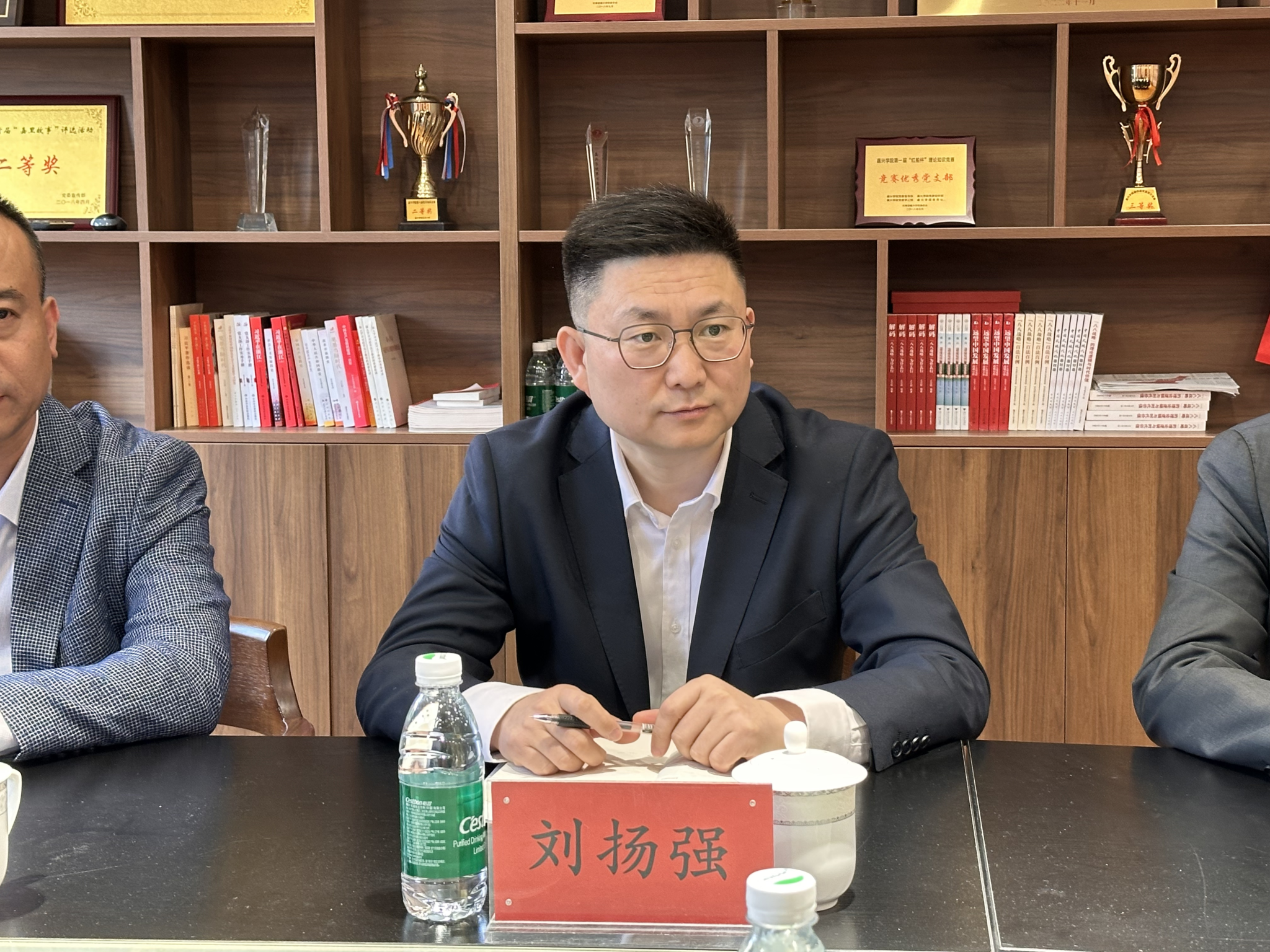 3月26日上午,鲁南制药集团浙江区域总监刘扬强、嘉信医药党委书记张国荣等企业代表一行莅临av在线看