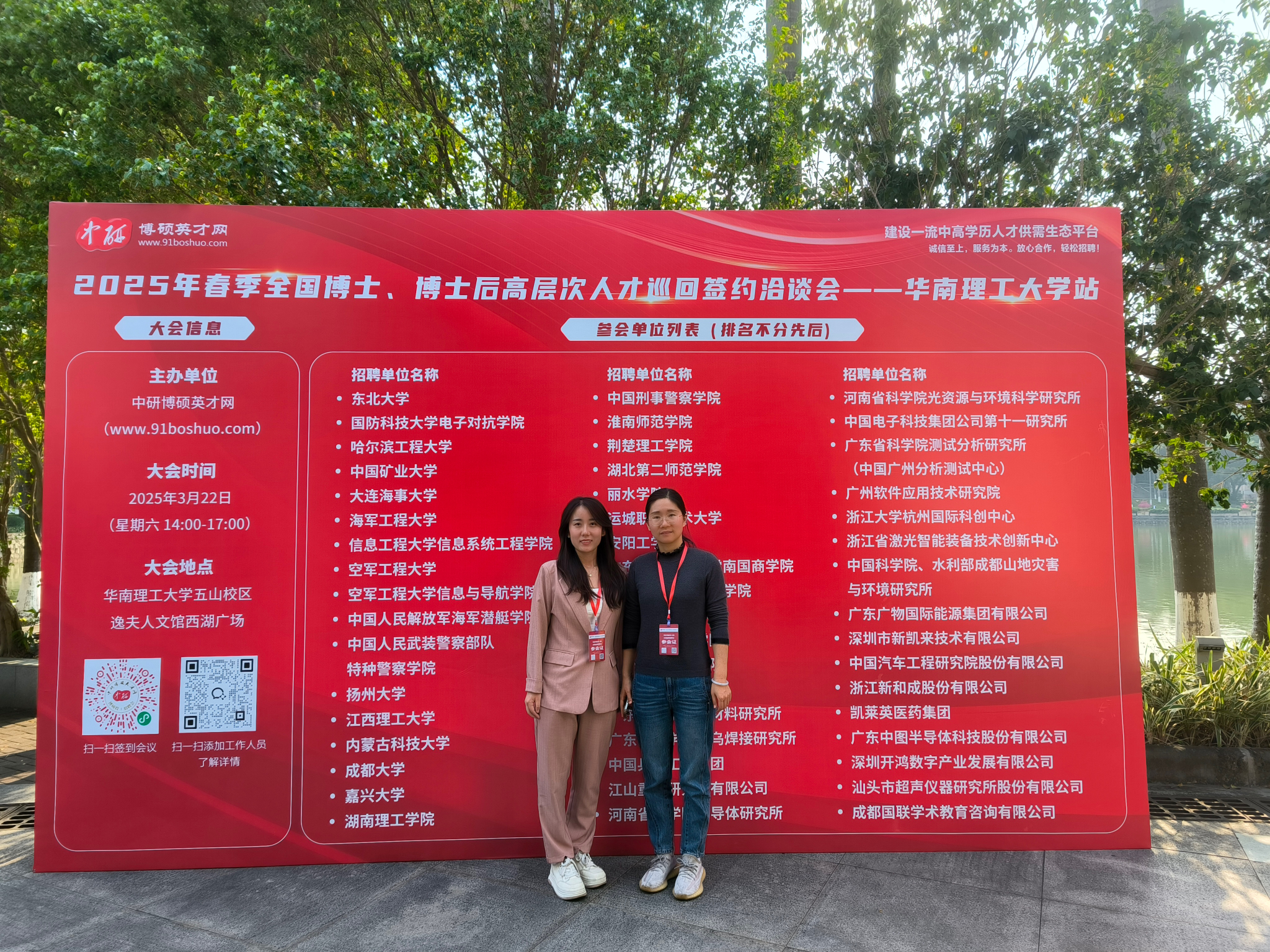 副院长孙李丹带队赴青年教师熊佳丽的母校所在地广州参加“2025年春季全国博士、博士后高层次人才巡回签约”现场洽谈会。