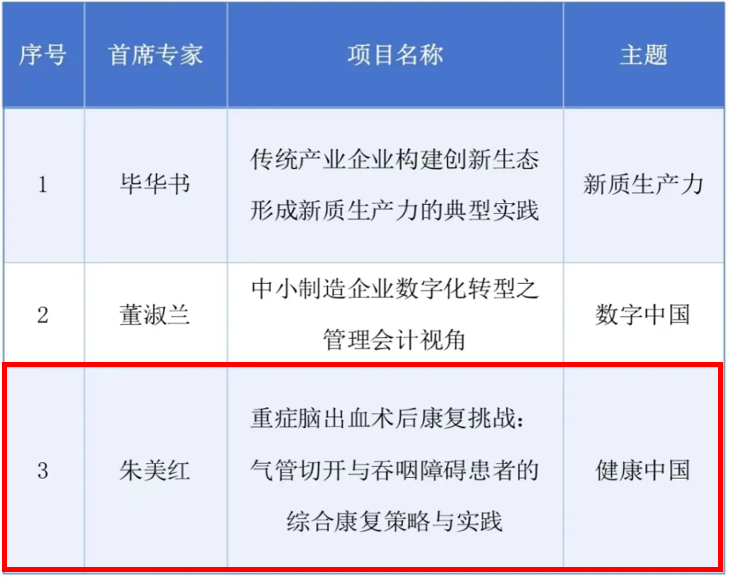 护理学专业研究生导师朱美红老师主题案例《重症脑出血术后康复挑战:气管切开与吞咽障碍患者的综合康复策略与实践》成功入选“健康中国”方向。