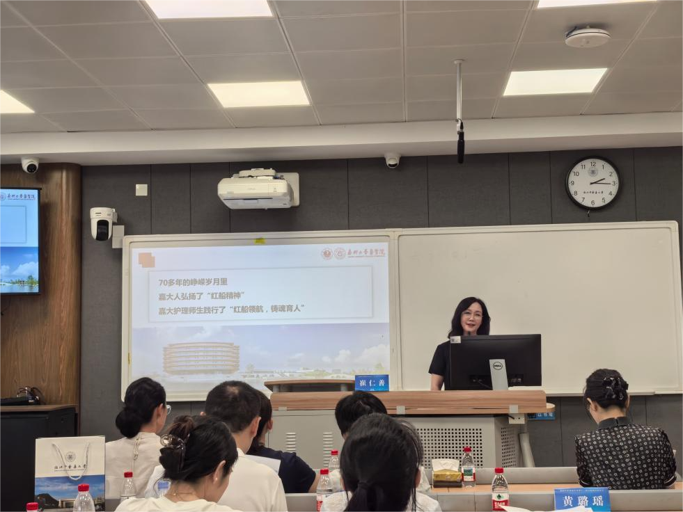 护理学专业的发展现状和取得的成绩,分享了学校围绕红船精神开展思政育人工作的特色做法与实践成果,强调将红船精神贯穿于护理学专业人才培养全过程,推动思政教育与专业教育同向同行、同频共振。同时,肖教授围绕护理学专业未来建设思路,提出了完善课程思政体系、提升教师思政教学能力、深化产教融合、拓展国际交流合作等发展方向,助力护理学科高质量发展。