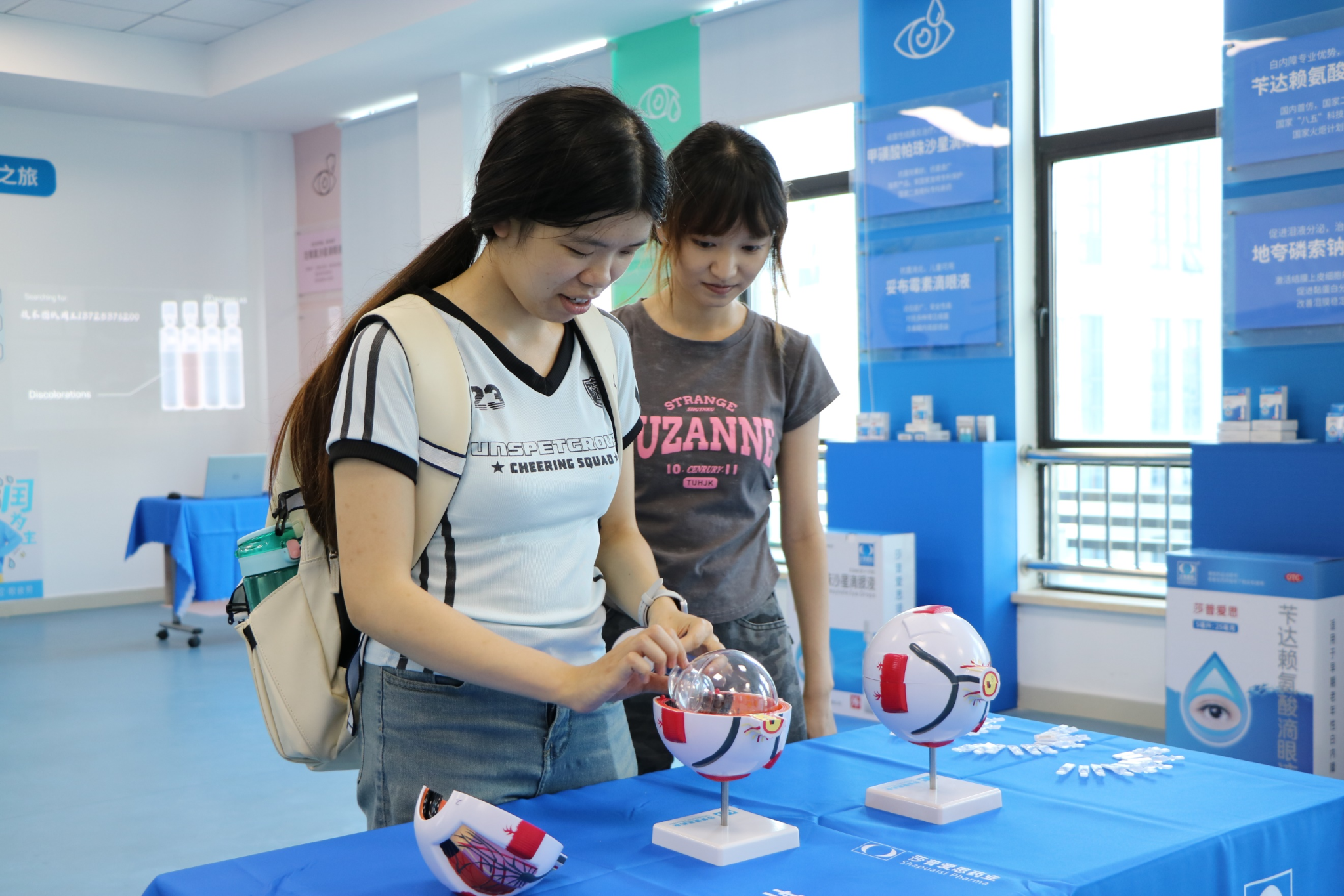 活动下半场,药学师生前往浙江莎普爱思药业股份有限公司,参与“你是我的眼”科普研学活动。师生们走进单剂量滴眼剂GMP生产车间,实地了解药品生产质量管理的规范流程与先进技术,并参观眼健康科普馆,深入学习眼保健相关知识。